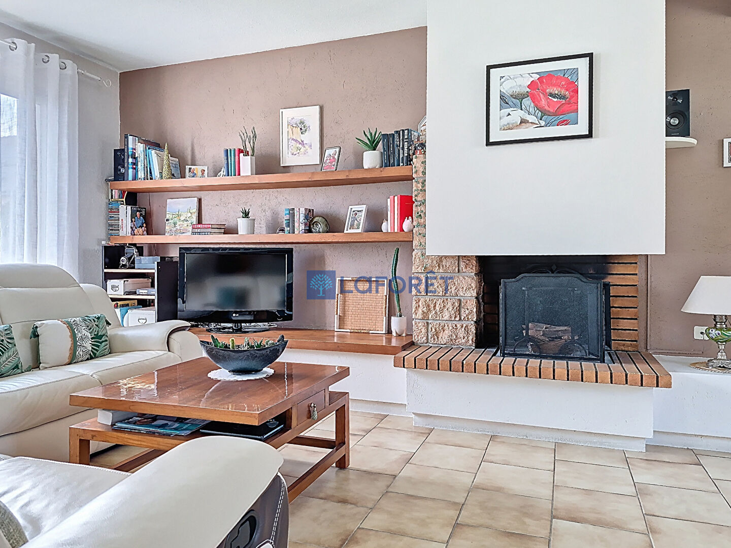 Elle se compose d'un spacieux et lumineux salon séjour avec une cheminée ,ainsi qu'une cusine aménagée et équipée .