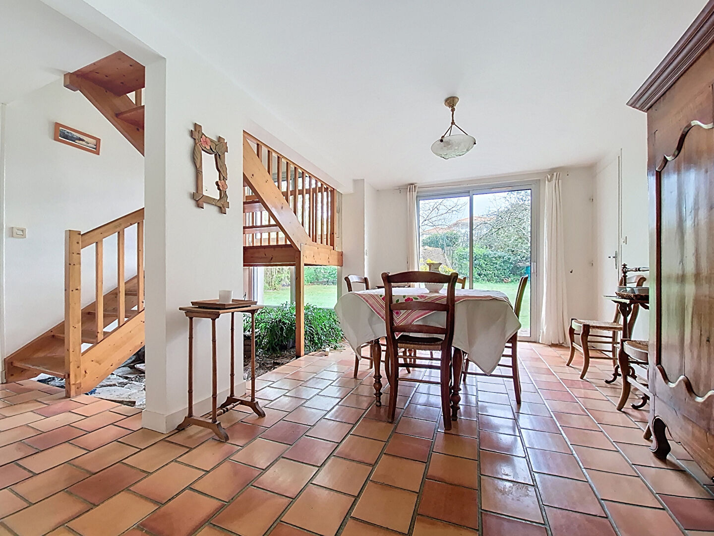 Elle se compose au rez-de-chaussée d'un agréable salon avec un insert, ouvert sur une salle à manger conviviale, ainsi qu'une cuisine aménagée et équipée .Vous trouverez également une pièce pouvant faire office de bureau ou de chambre, salle d'eau et un wc .