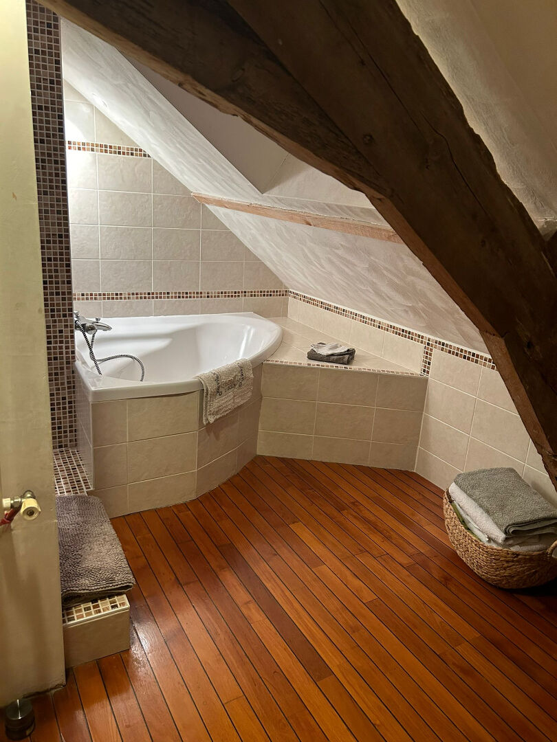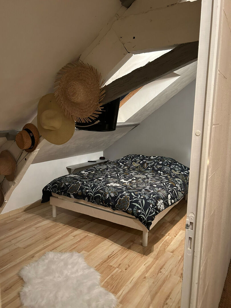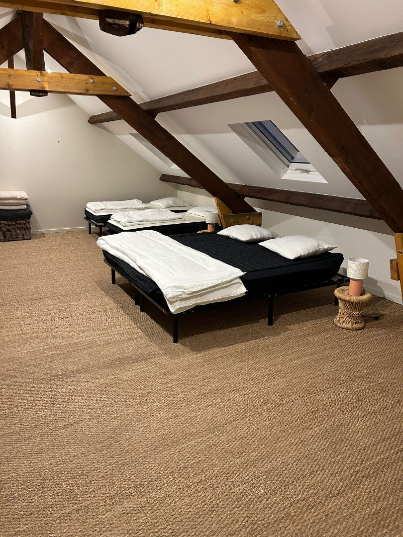 A l'étage, grande pièce avec 4 couchages. Possibilités de gîte.