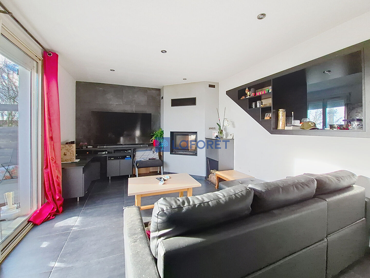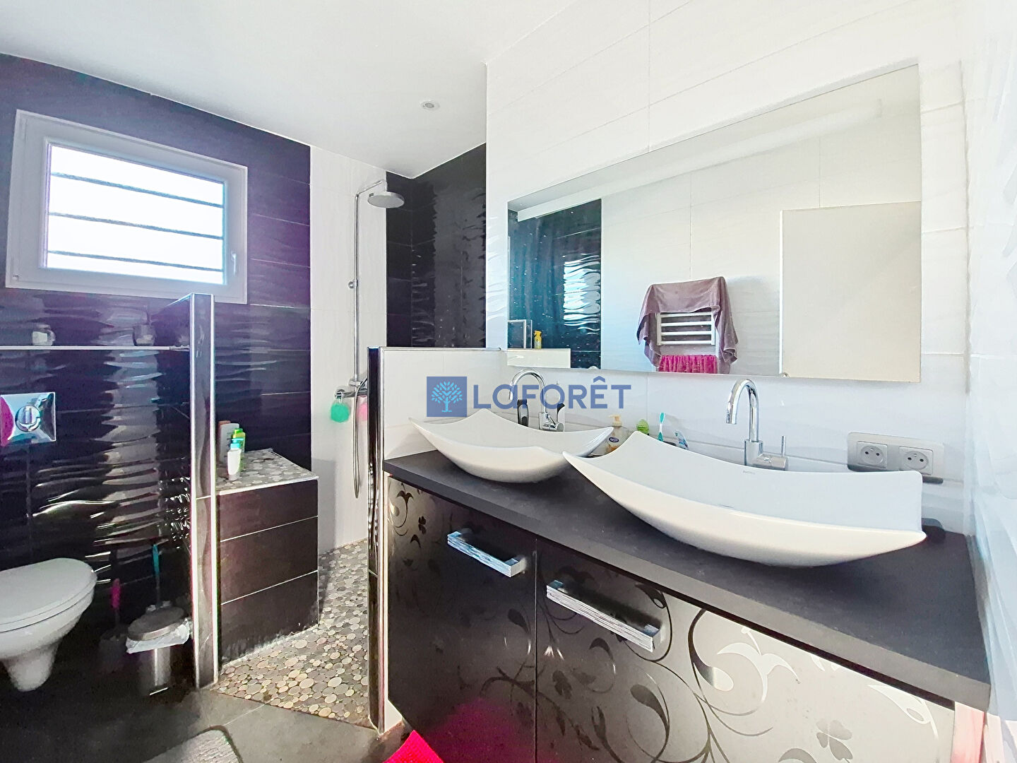Salon séjour avec insert, 3 chambres, cuisine aménagée équipée, salle d'eau avec double vasque, garage.