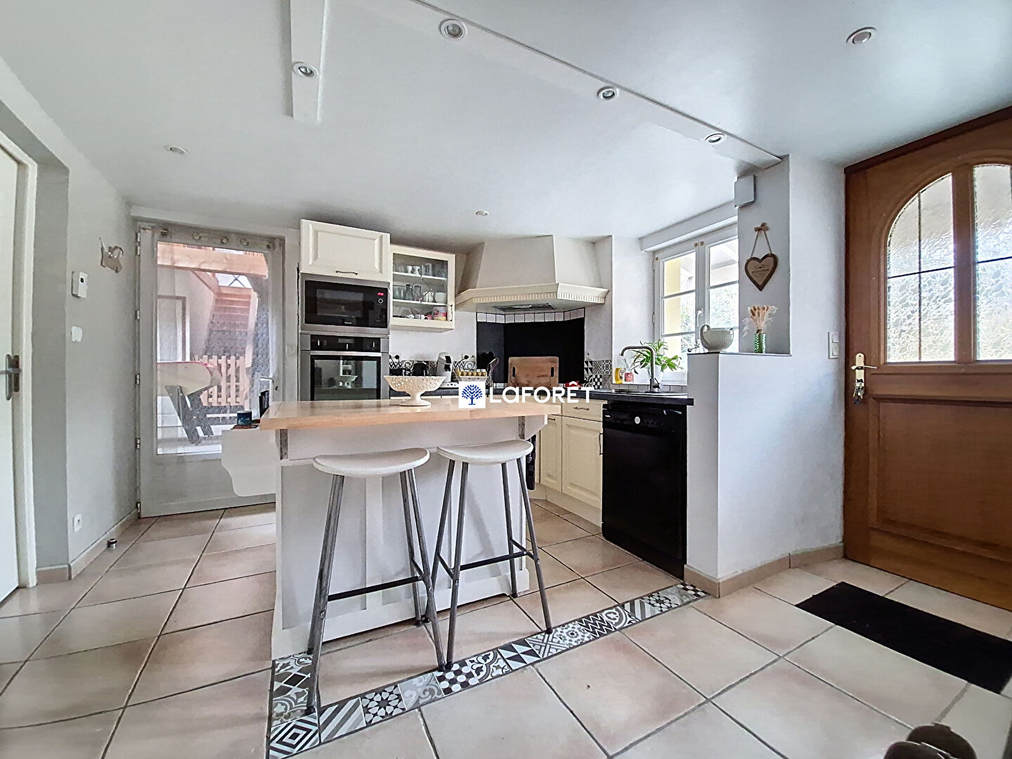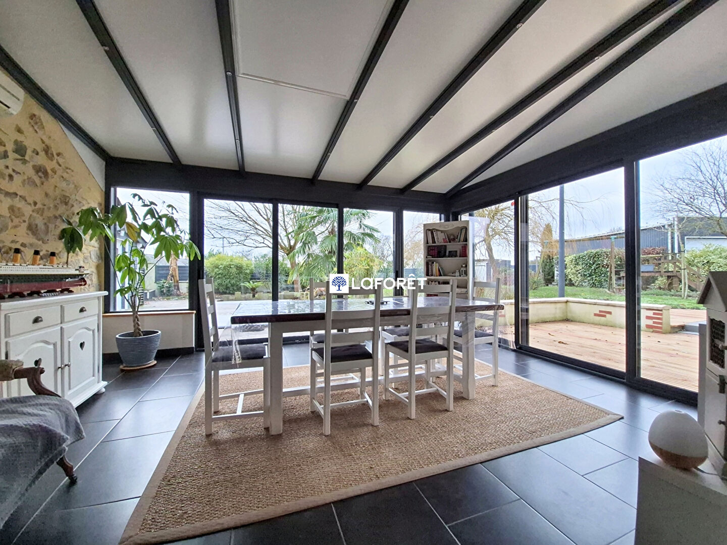 apparentes et son poêle à granulés offre un véritable cocon de bien-être. La salle à manger prolongée par une véranda lumineuse, s'ouvre sur la piscine et le jardin sans vis à vis, créant un espace idéal pour profiter pleinement de l intérieur comme de l'extérieur .