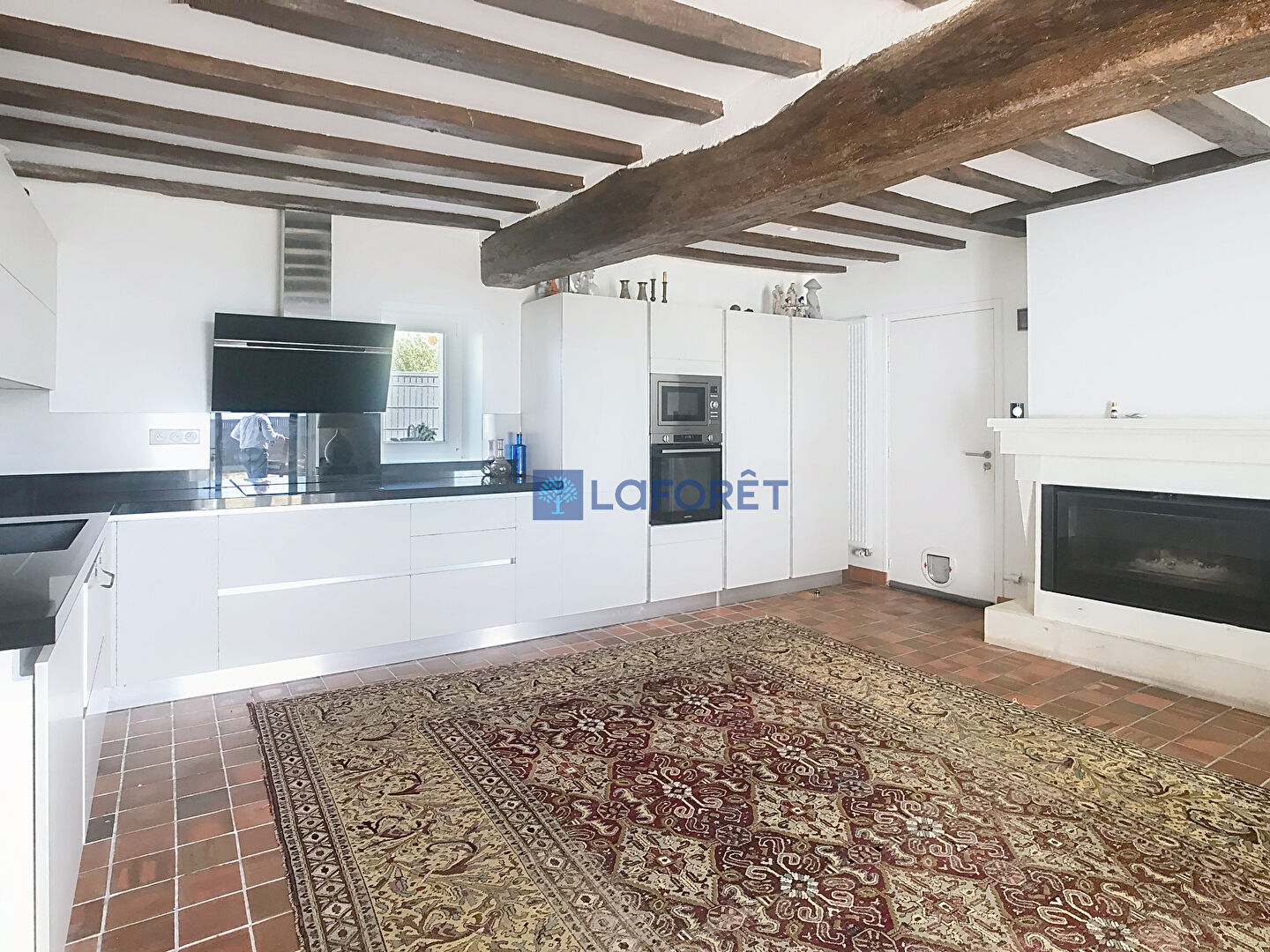 Au rez-de-chaussée, vous serez séduit par une pièce de vie avec tomettes anciennes, poutres apparentes et une cheminée chaleureuse, idéale pour vos soirées.