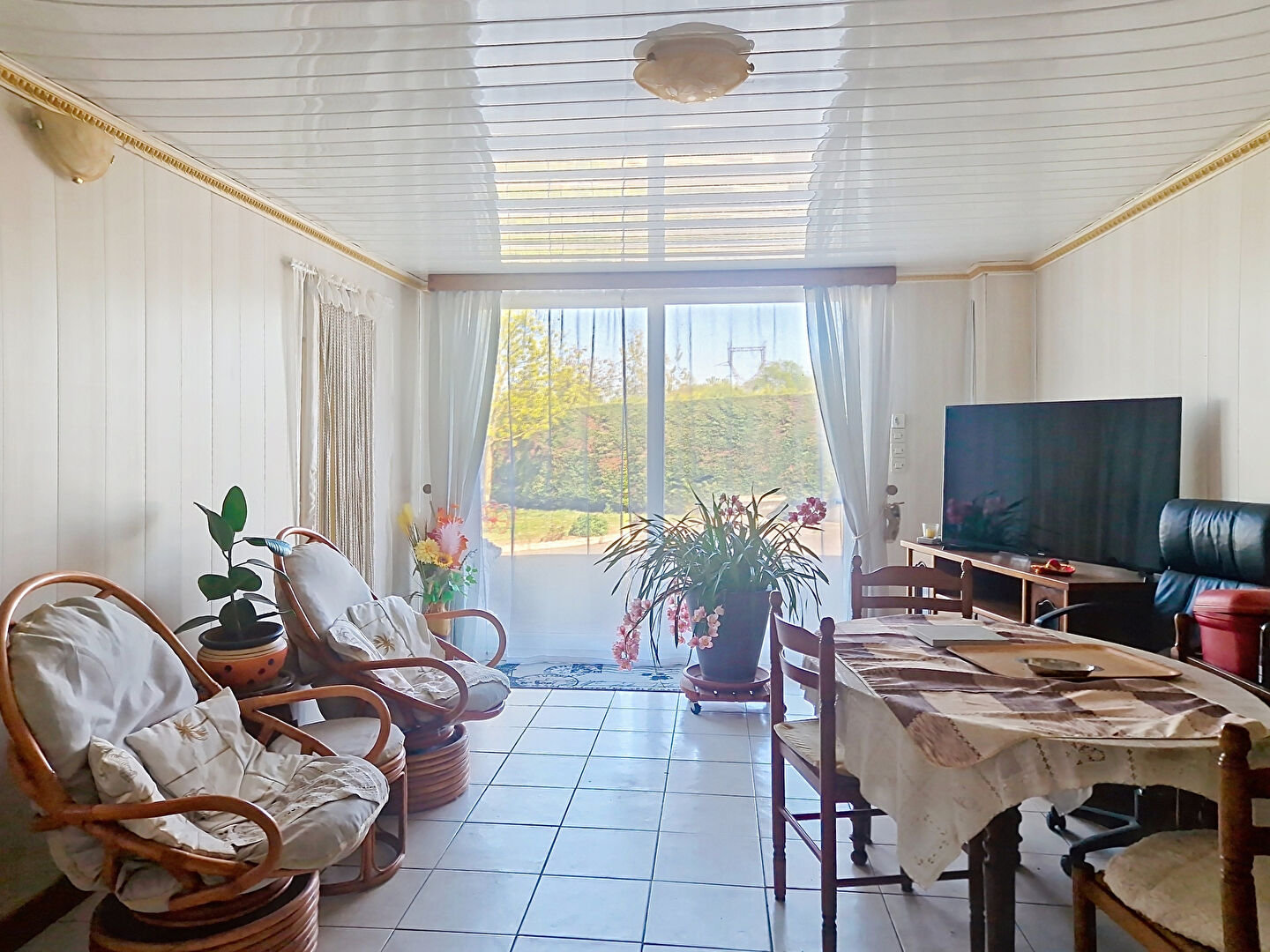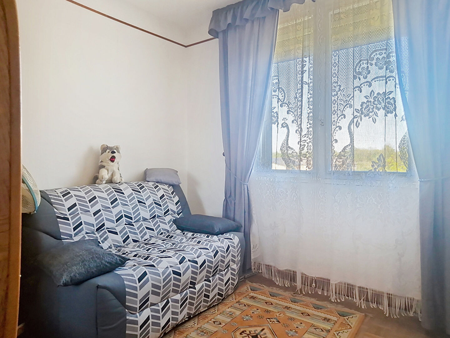 A l'étage, une cuisine aménagée et équipée, un pièce de vie lumineuse, deux chambres, une salle d'eau et 1 WC.