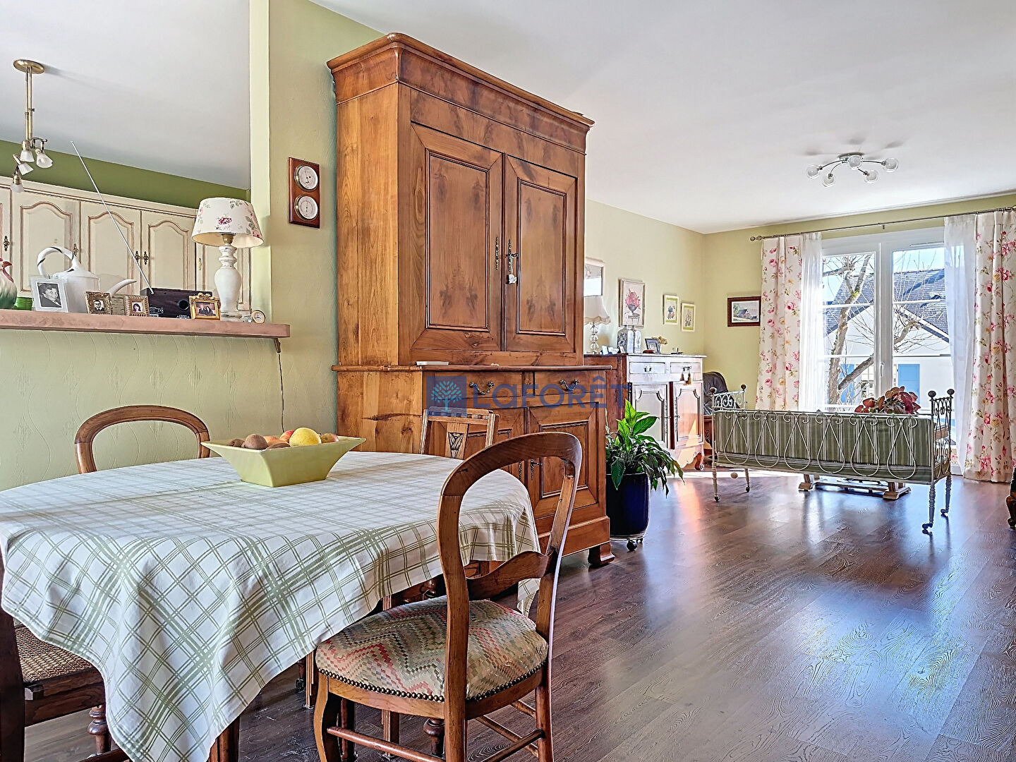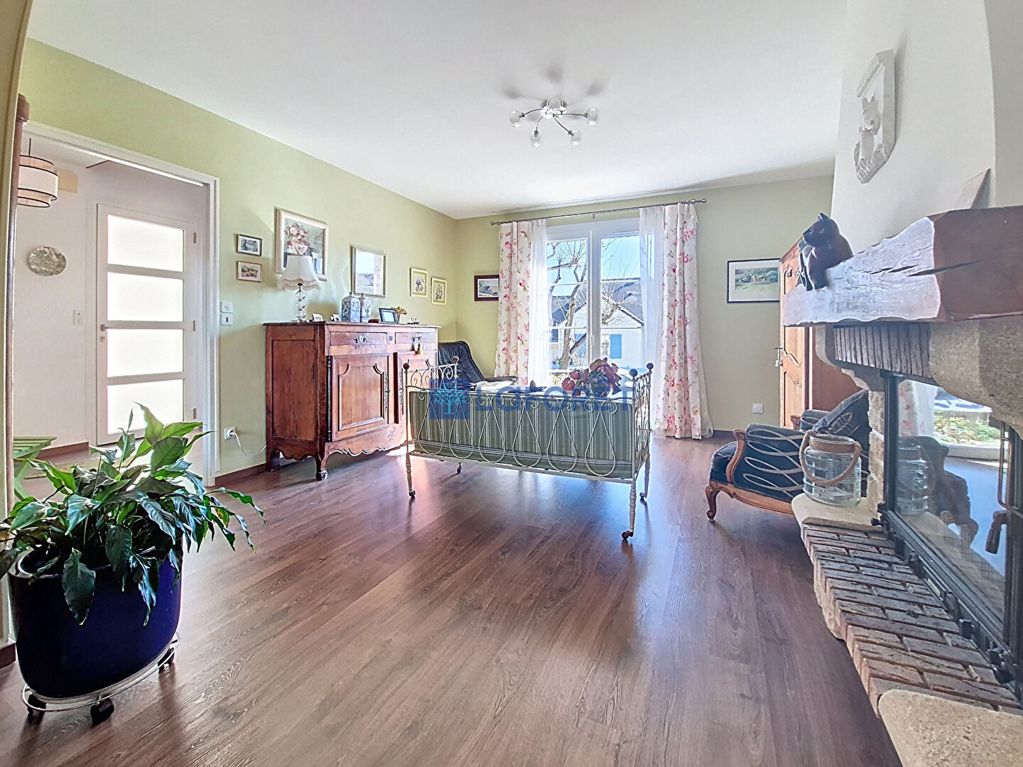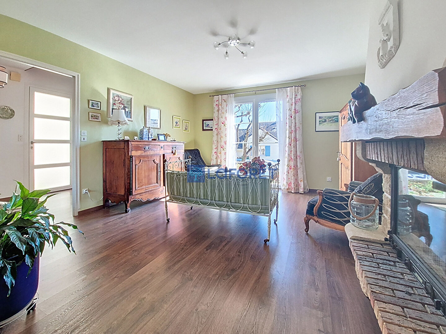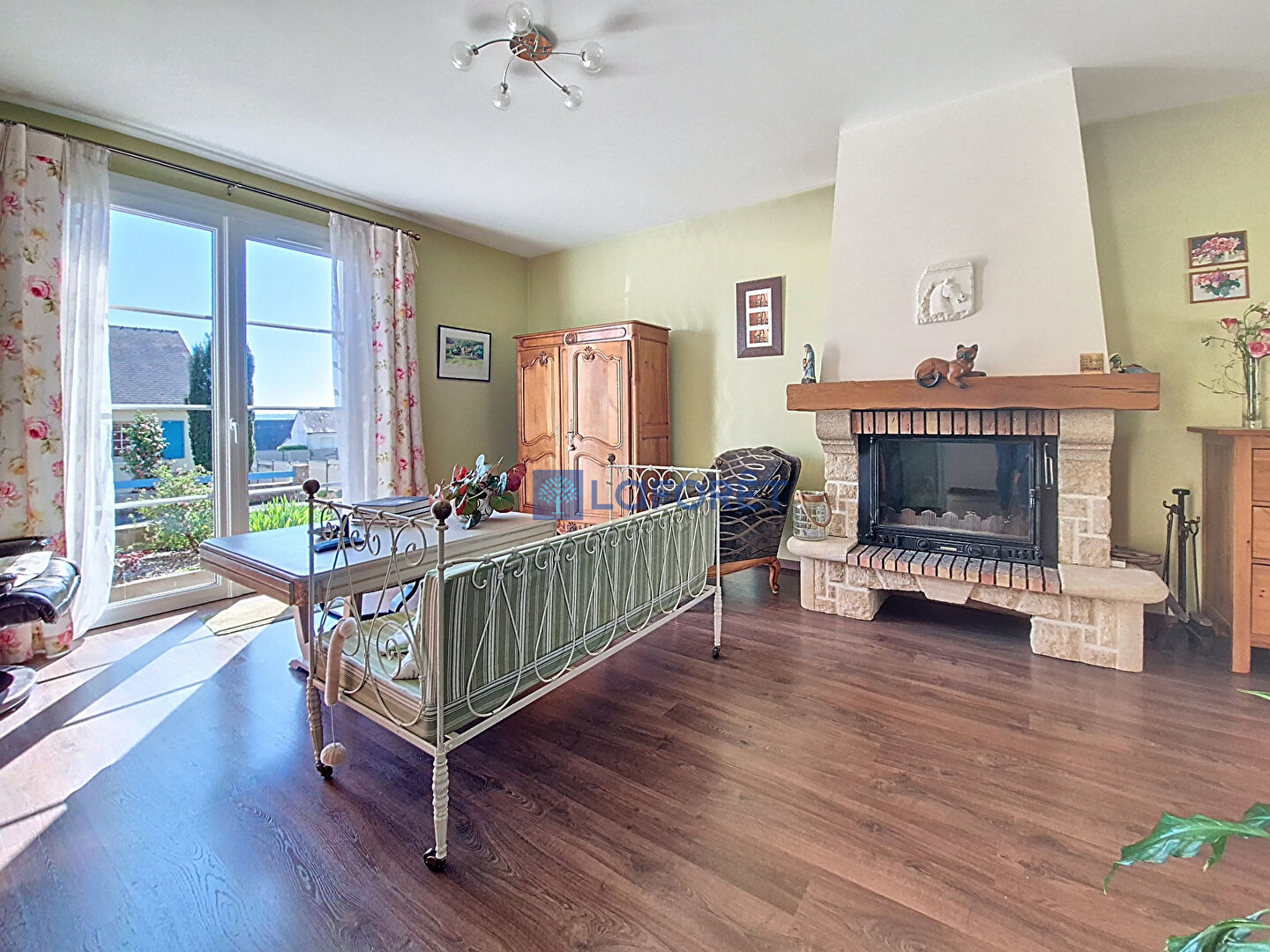 Elle offre un bel espace e vie lumineux comprenant salon séjour chaleureux avec un insert et un poêle à granulés ,ouvert sur une agréable véranda.