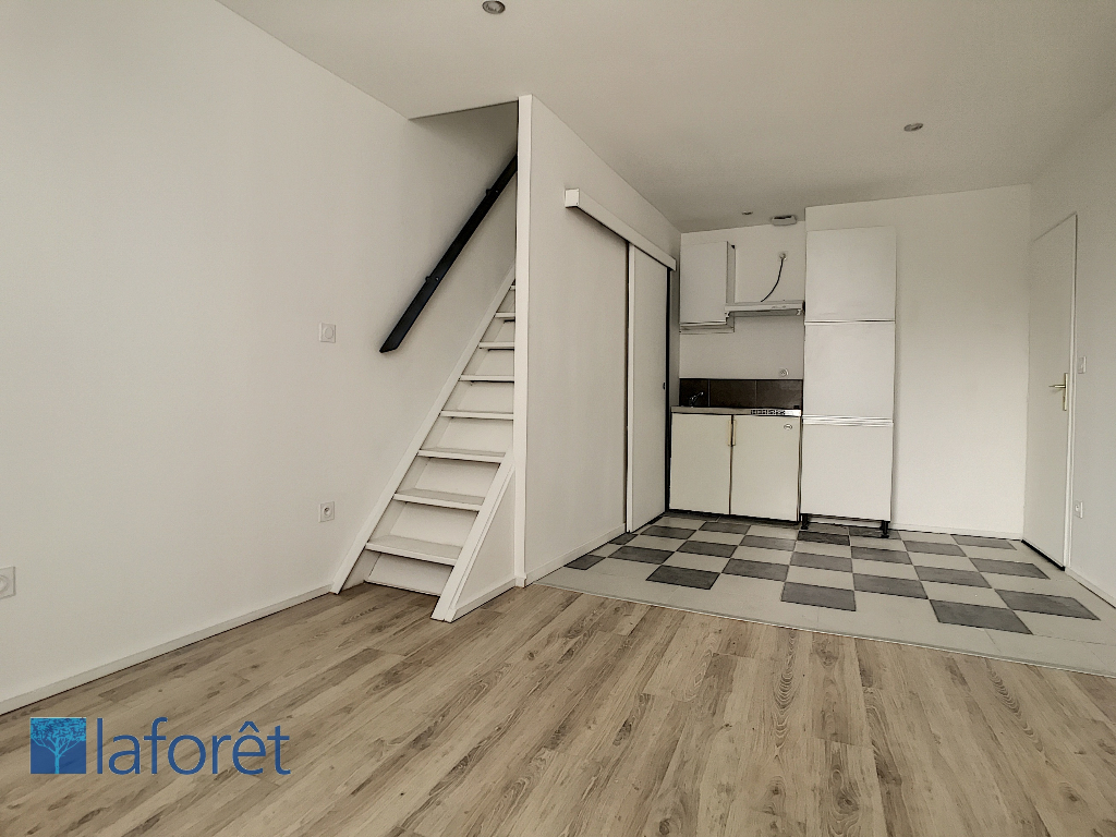 Au 1er étage, appartement offrant une pièce de vie lumineuse avec coin cuisine, une salle d'eau et un WC.