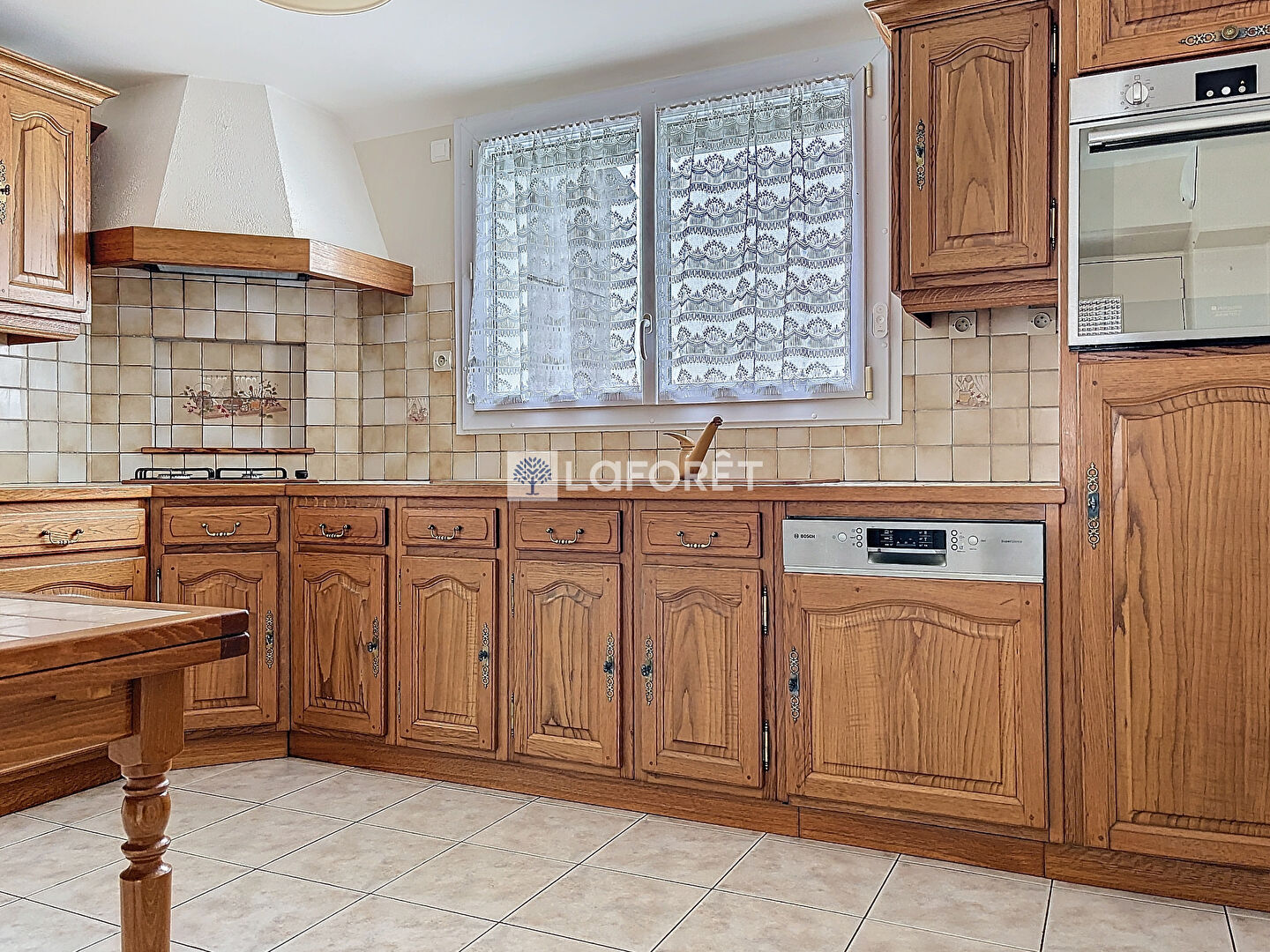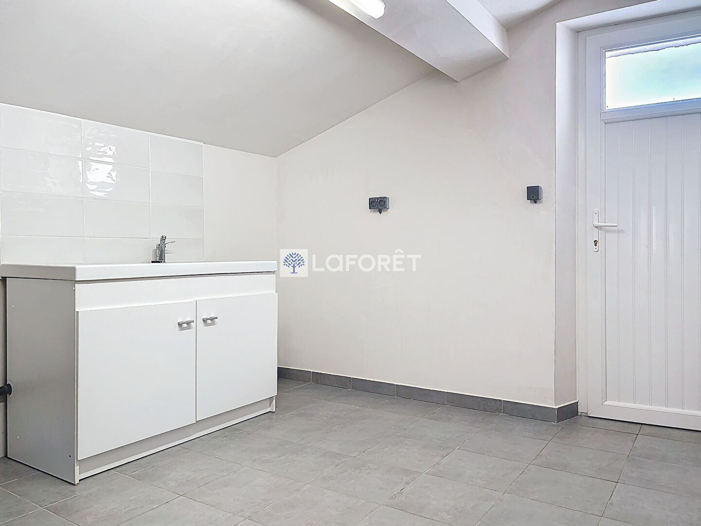 Maison de plain-pied avec une grande pièce de vie, une cuisine séparée aménagée et équipée, 2 chambres, salle d'eau, WC séparé et buanderie.