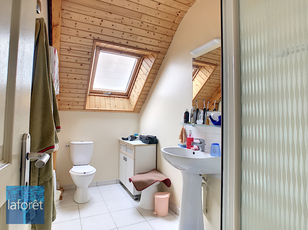 A l'étage : 1 dégagement, 2 chambres, 1 salle d'eau avec WC.