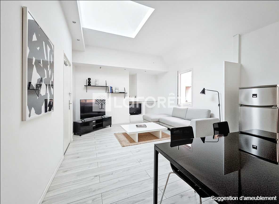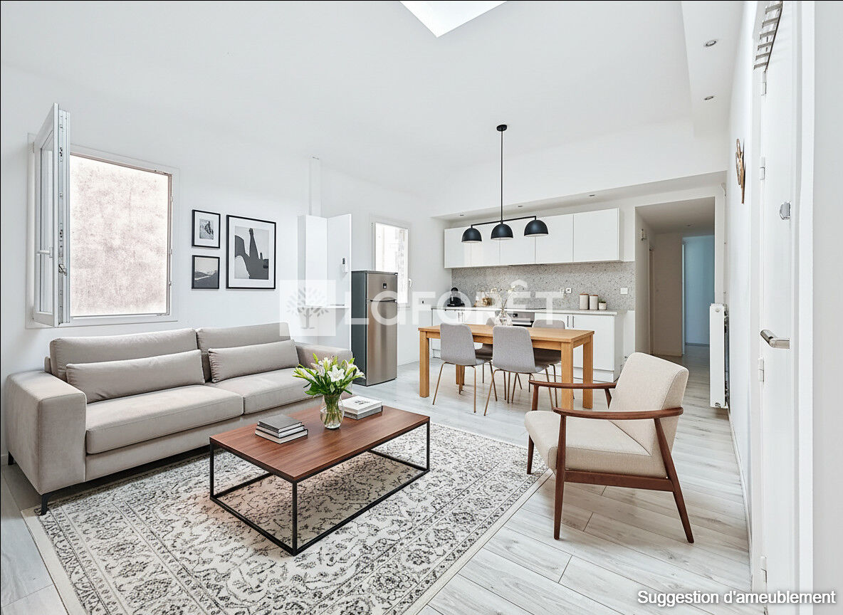 La pièce de vie, baignée de lumière, séduit par sa belle hauteur sous plafond et sa cuisine aménagée/équipée ouverte, parfaite pour profiter de moments conviviaux.