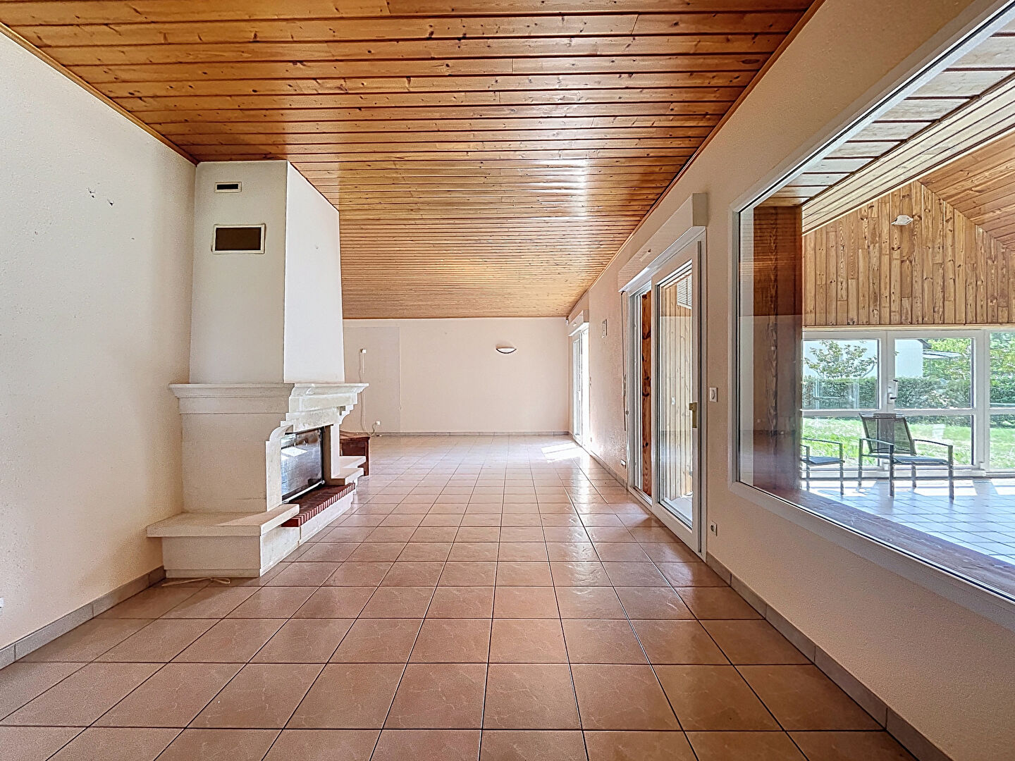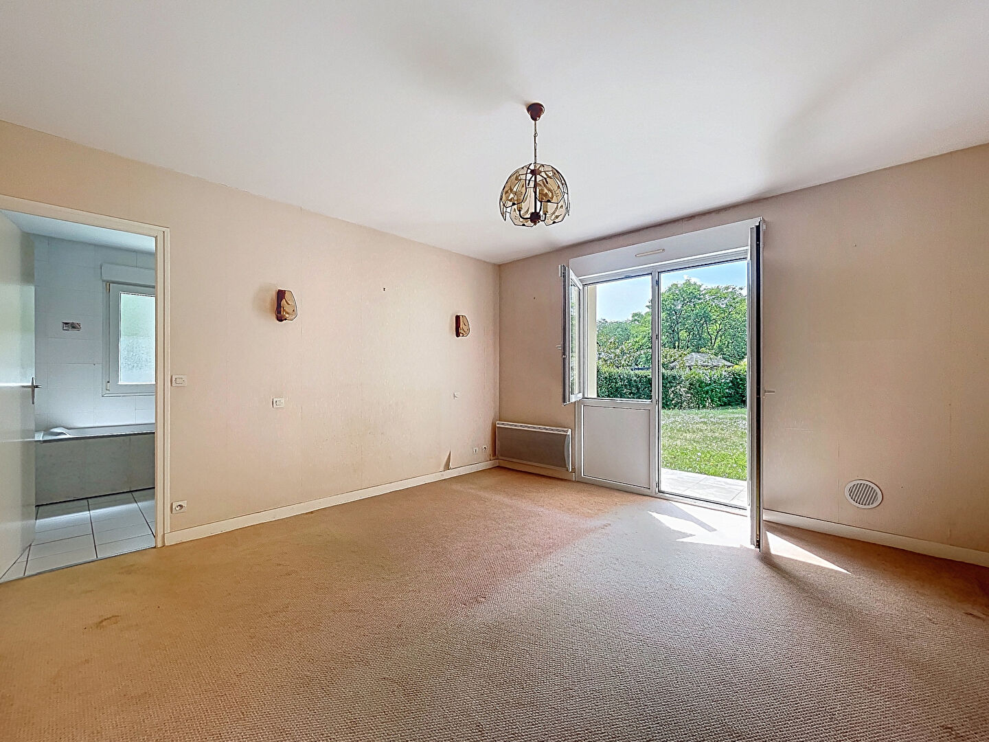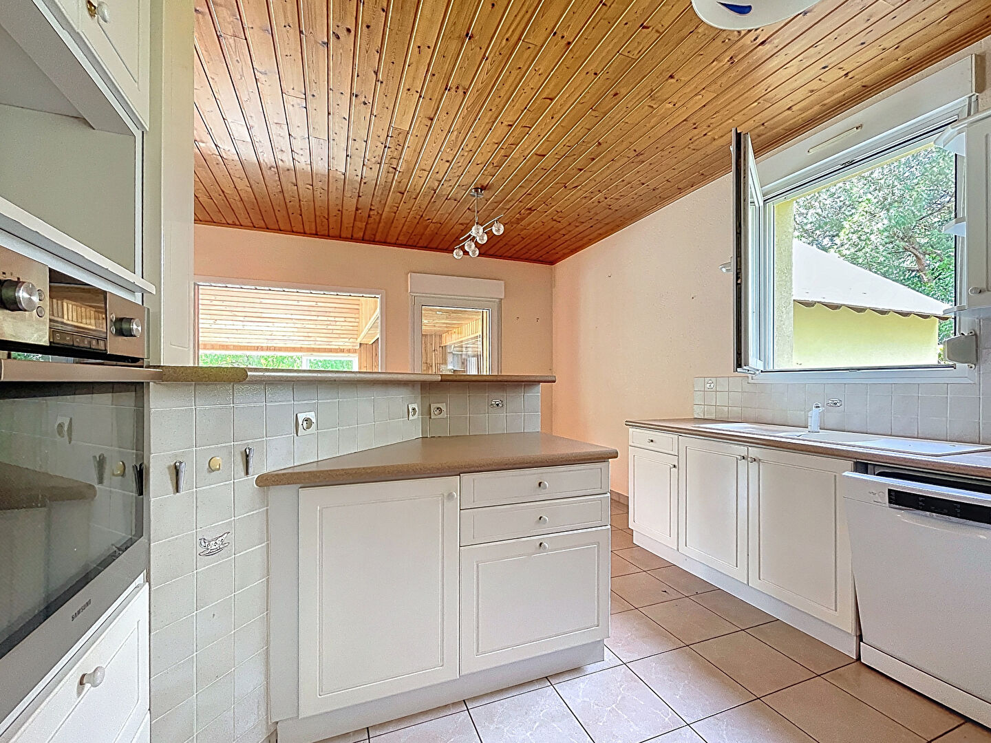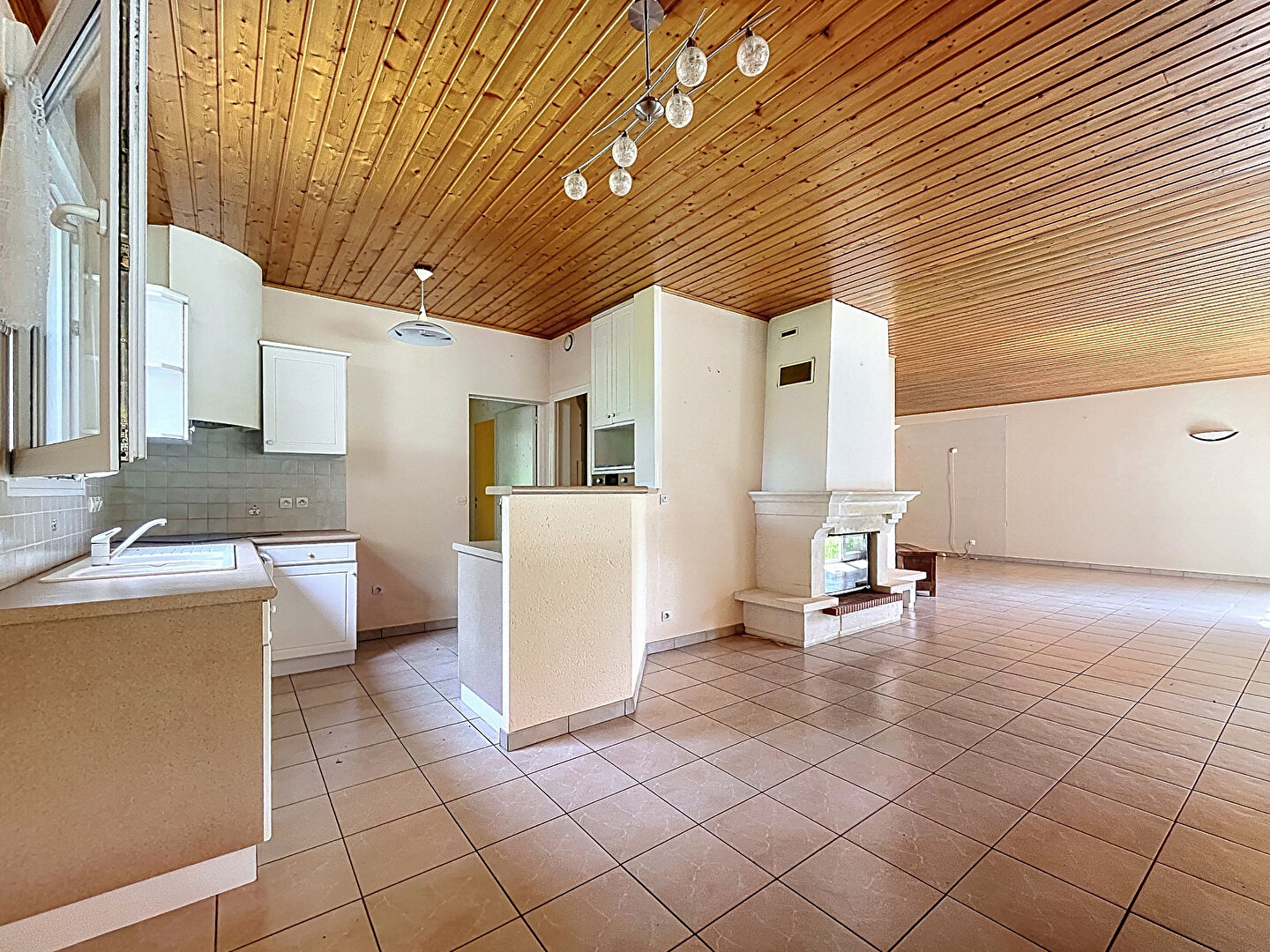 Maison des années 90 distribuant au rez de chaussée une vaste pièce de vie avec cheminée, une cuisine aménagée équipée avec son arrière cuisine, un bureau , un wc indépendant ainsi que deux chambres qui ont leur propres salle de bains avec wc.
