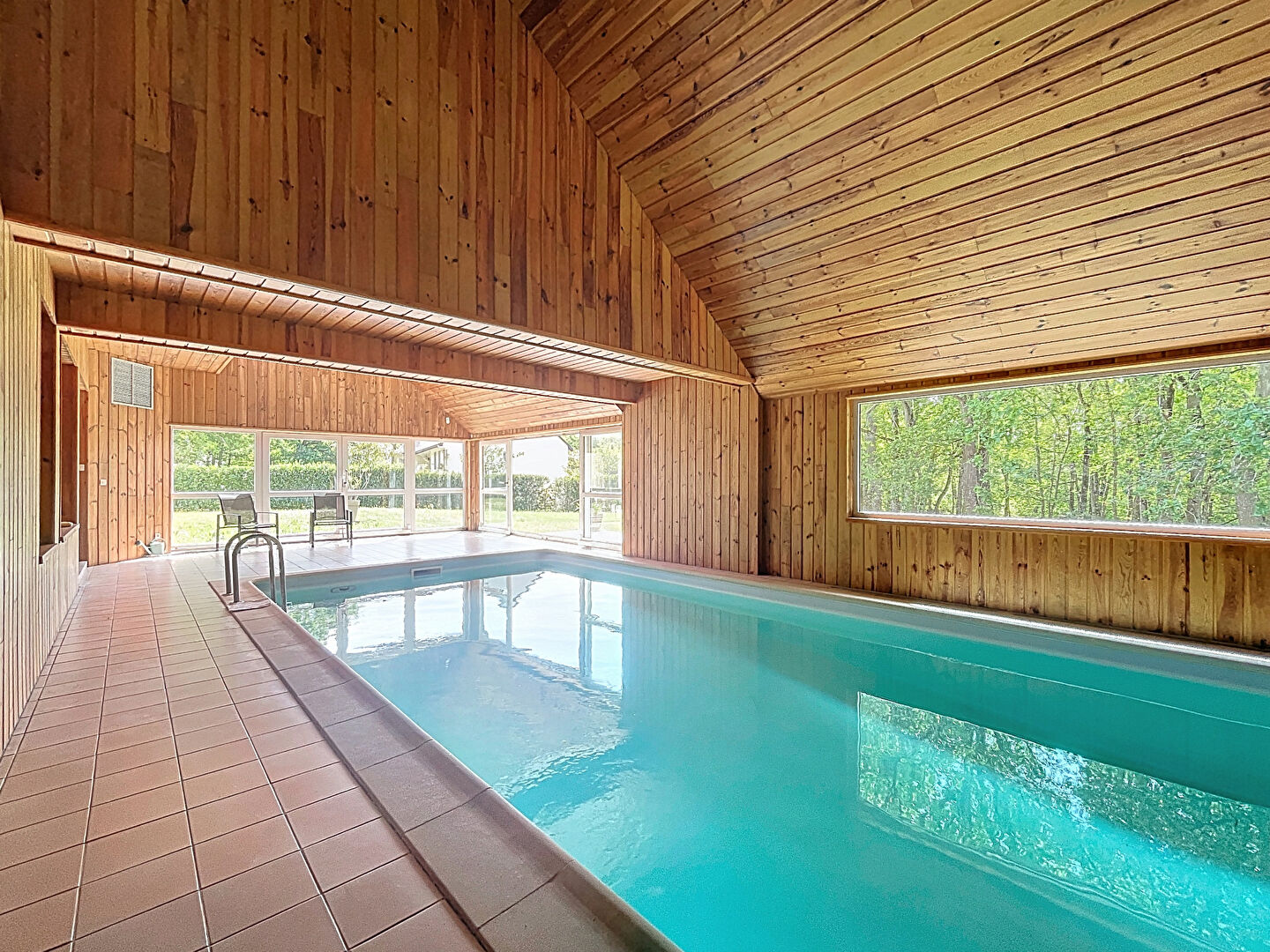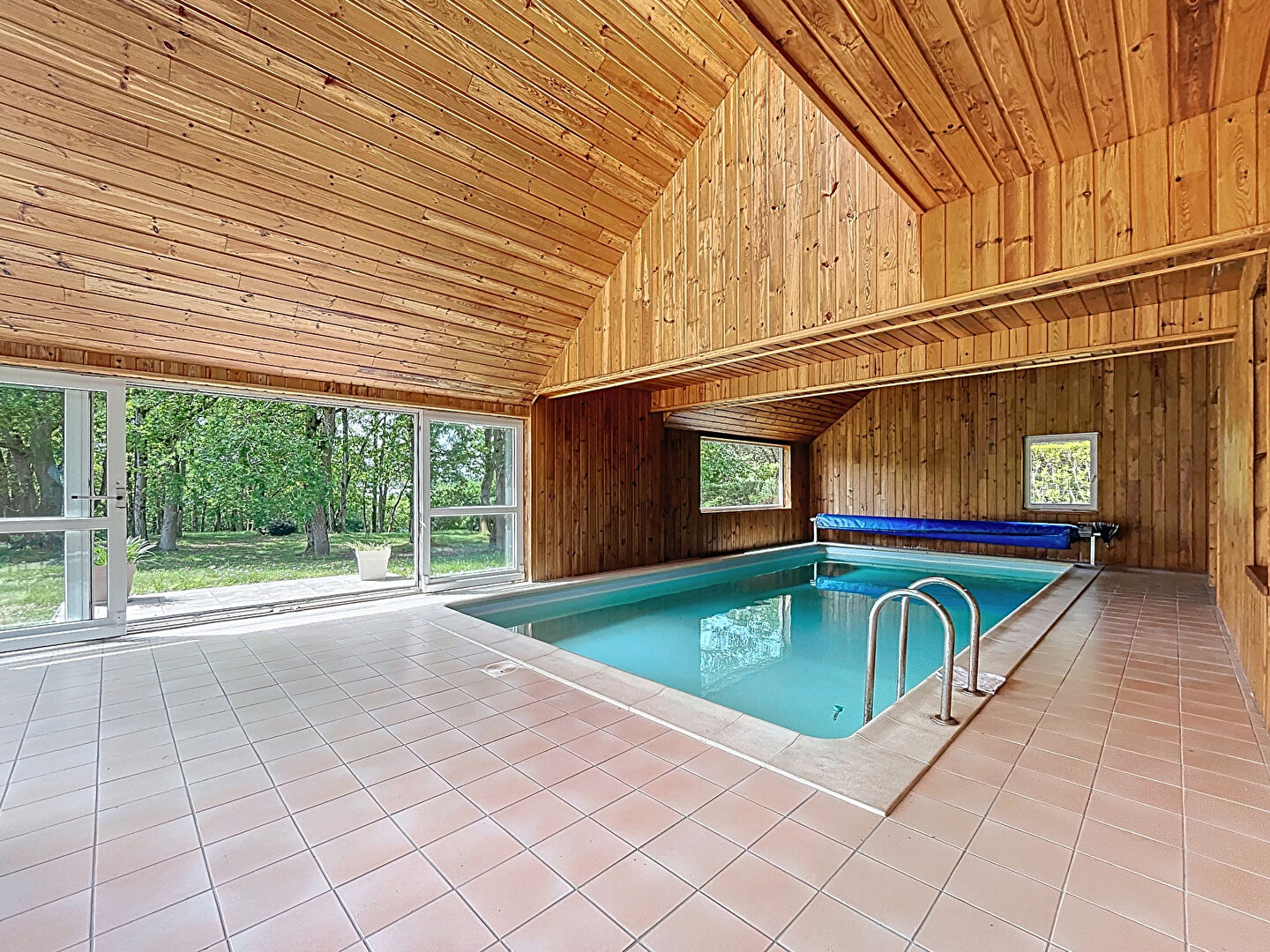 Pour peaufiner ce niveau : une piscine intérieure chauffée (8×4 m) avec douche, vue sur le parc !
