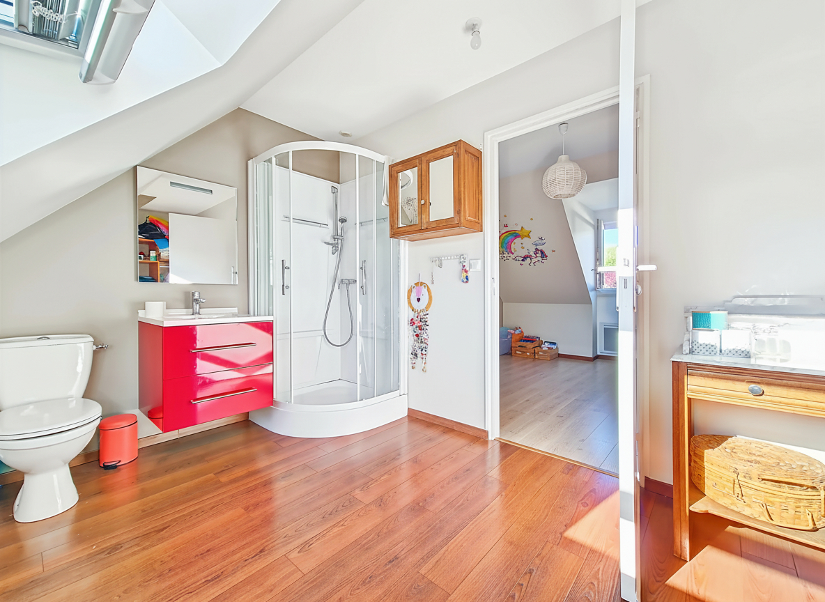 Au même niveau la chambre parentale, une salle de bain et wc indépendants. Profitez d'un grand garage de près de 27 M2 et d'une pièce supplémentaire de près de 18 M² qui peut aisément devenir une pièce habitable en plus pour créer une autre chambre ou un espace de travail au calme.