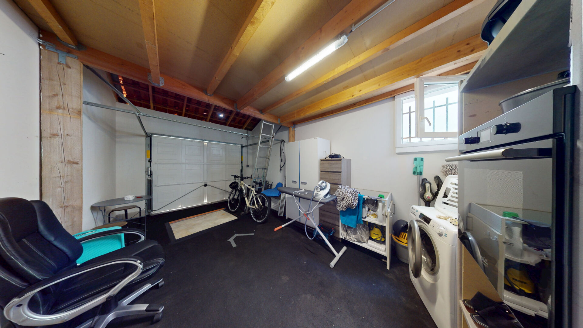Un garage fermé avec un accès directe au logement avec une mezzanine complètent ce bien. Une place supplémentaire de stationnement extérieur est comprise. Accès facile et pratique, idéal pour jeunes enfants ou vélos.