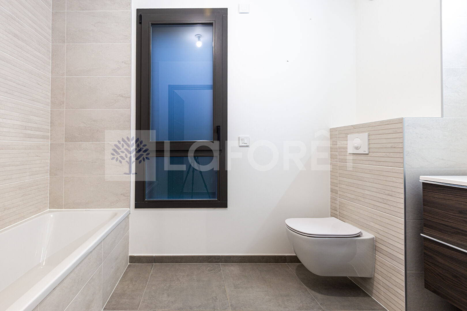 - Salle de bains aménagée et faïencée, WC suspendus