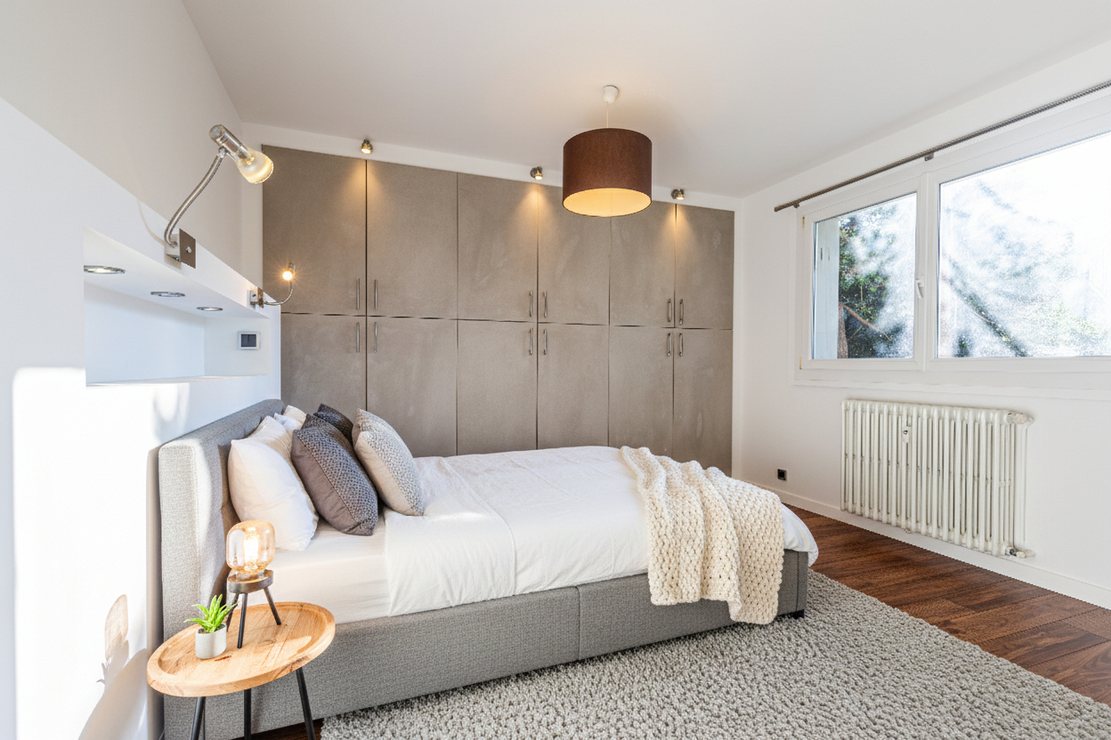 - Une chambre spacieuse et confortable avec de grands rangements.