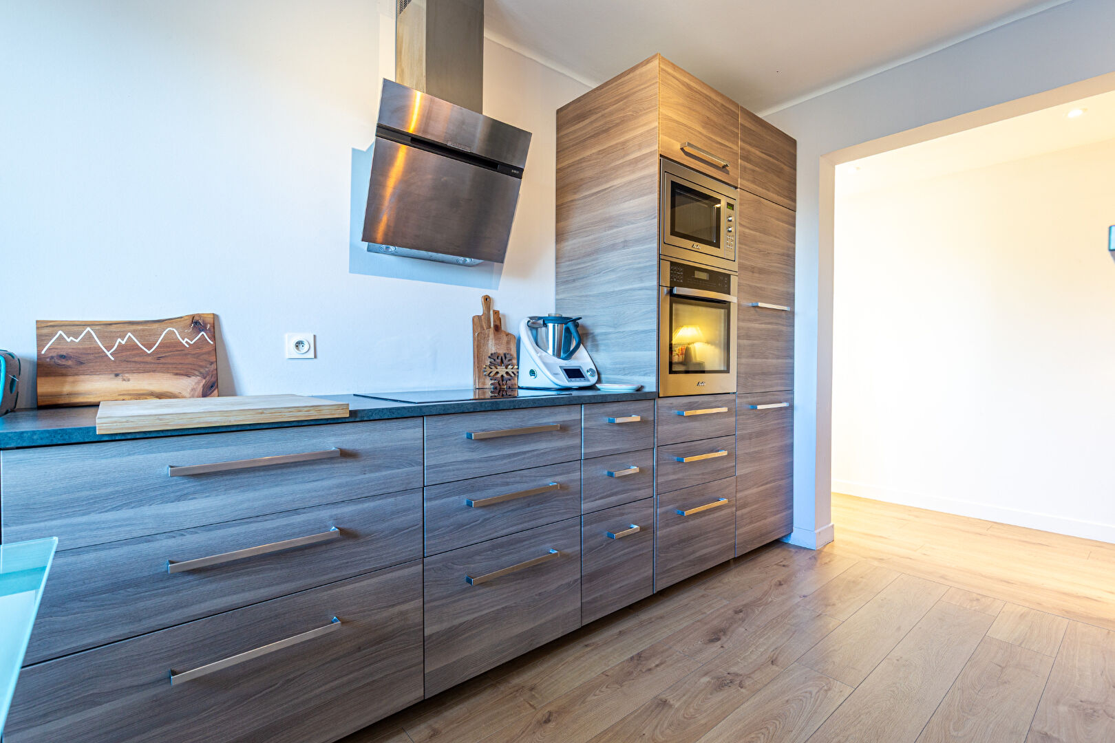 Dès l'entrée, vous serez séduit par la distribution optimale. Une pièce de séjour avec cuisine ouverte entièrement équipée, ouvrant sur un premier balcon avec une vue dégagée.
