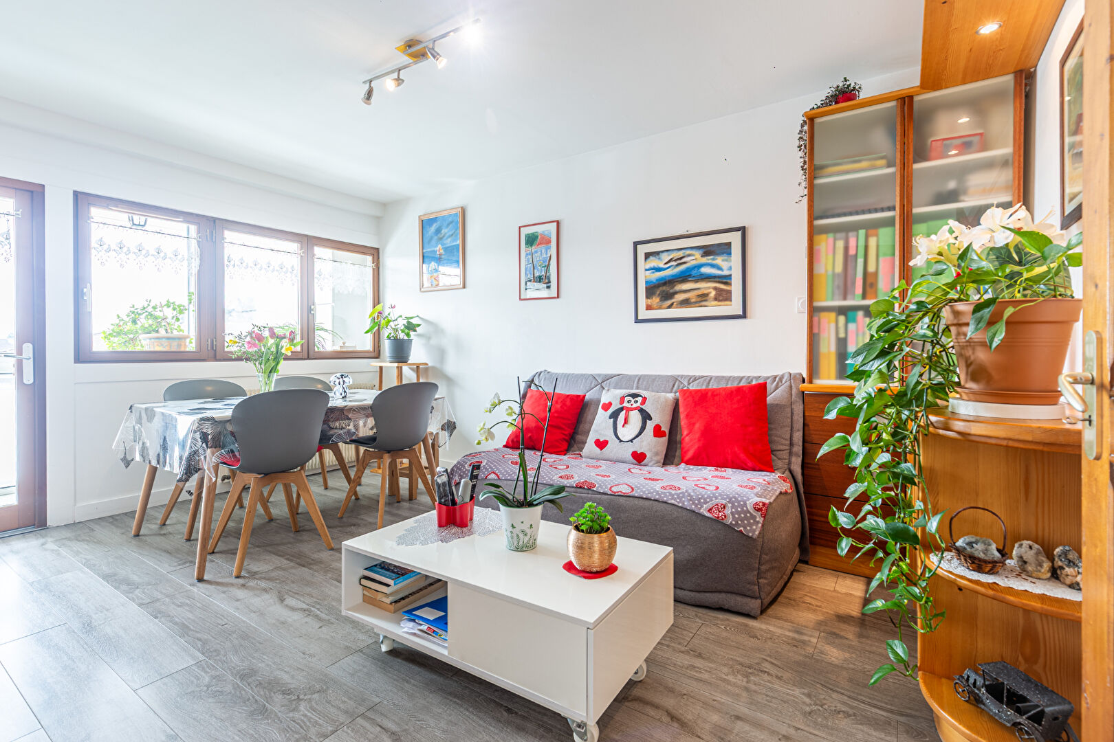 Situé à deux pas des commodités et des accès autoroutiers Nord et Sud d'Annecy, découvrez ce superbe appartement de type 3 traversant, niché au dernier étage d'une petite copropriété bien entretenue.