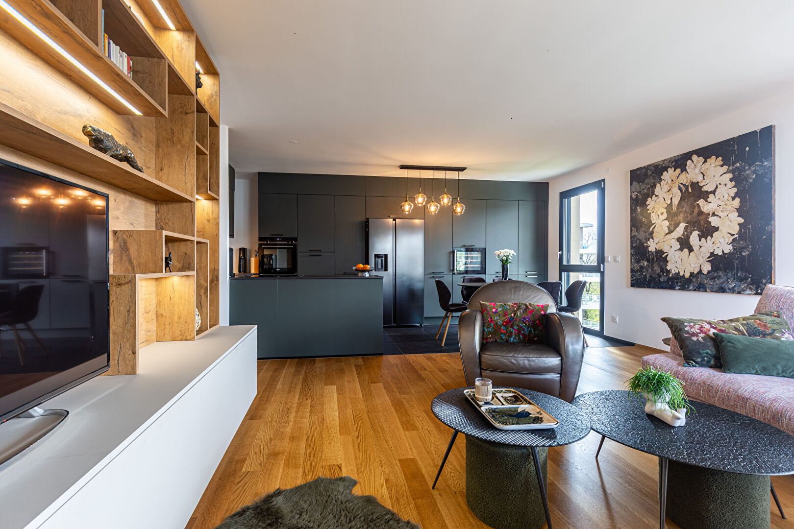 La pièce de vie, dotée d'un élégant parquet et baignée de lumière naturelle, s'ouvre sur une superbe terrasse spacieuse, idéale pour savourer les journées ensoleillées. Le salon/séjour est complété par une cuisine ouverte et équipée avec soin avec de nombreux rangements, un plan de travail en céramique et tout l'électroménager nécessaire. Moderne, fonctionnelle et chaleureuse, elle invite à la convivialité.