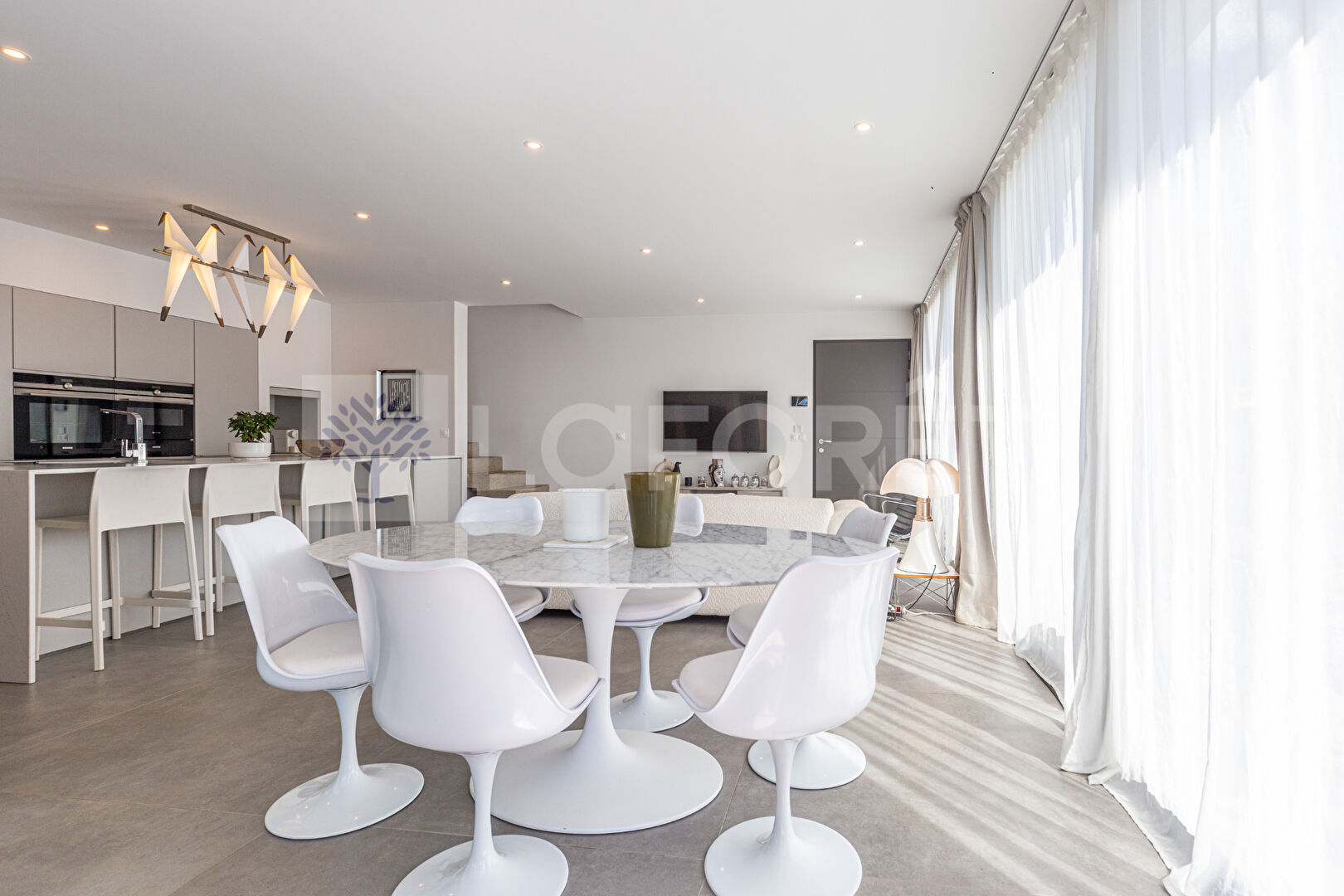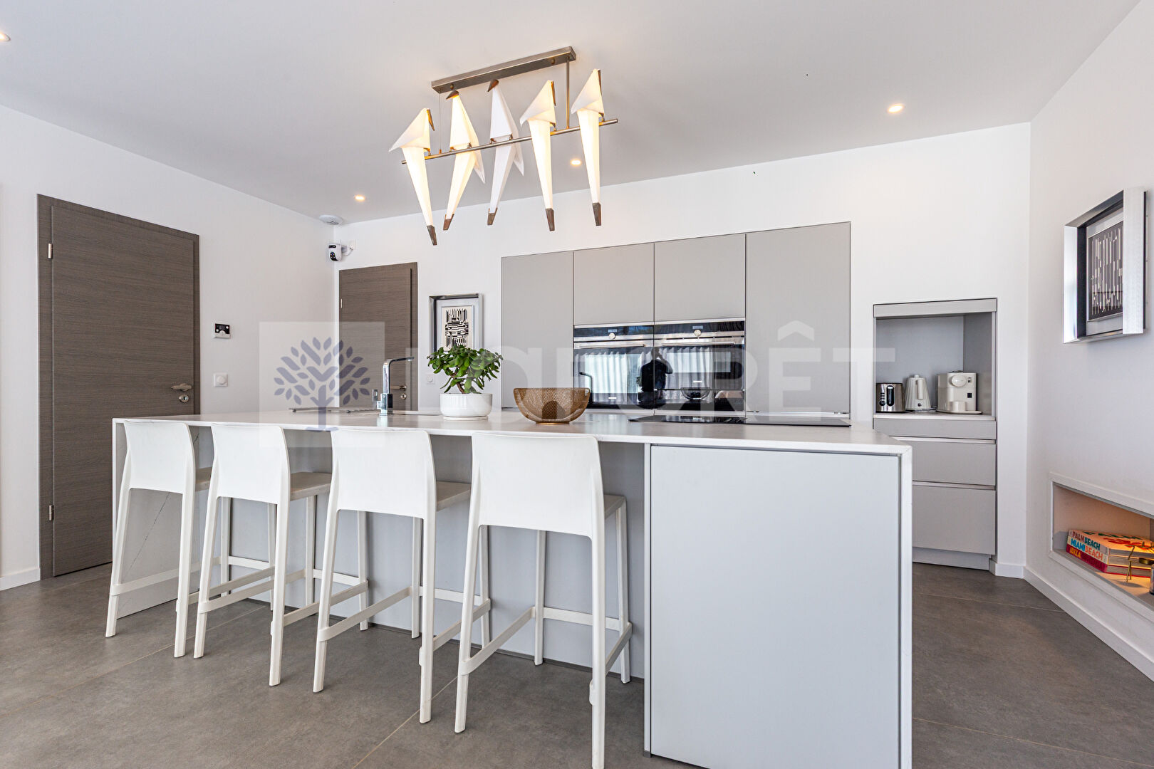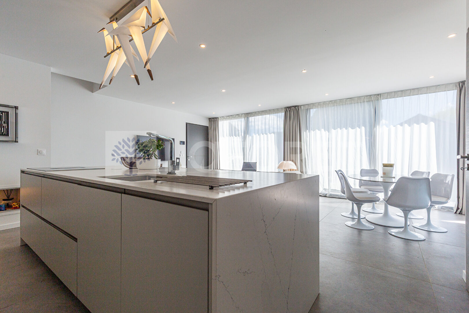 - Une cuisine ouverte avec un magnifique ilot central.