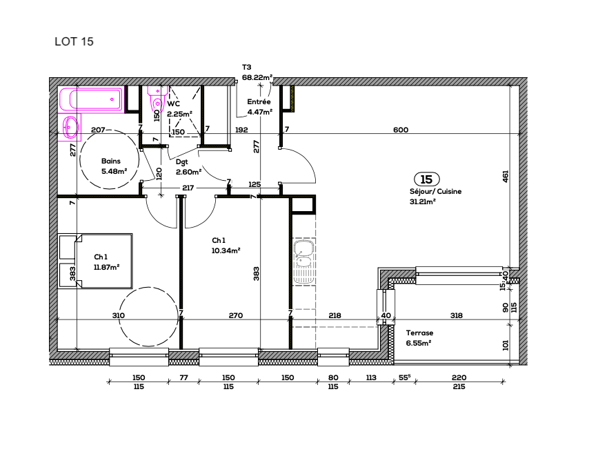 68 m² • 3 pièces • 2 chambres