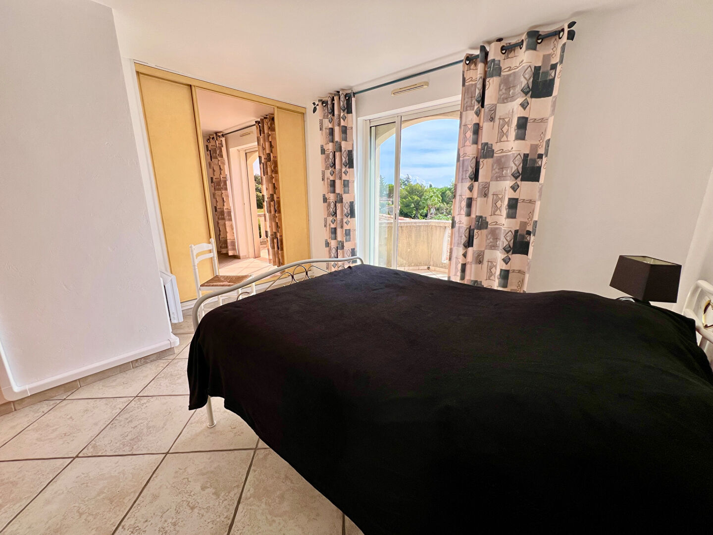 Étage : une chambre avec terrasse et aperçu mer, une chambre d'appoint et une salle d'eau avec W.C.
