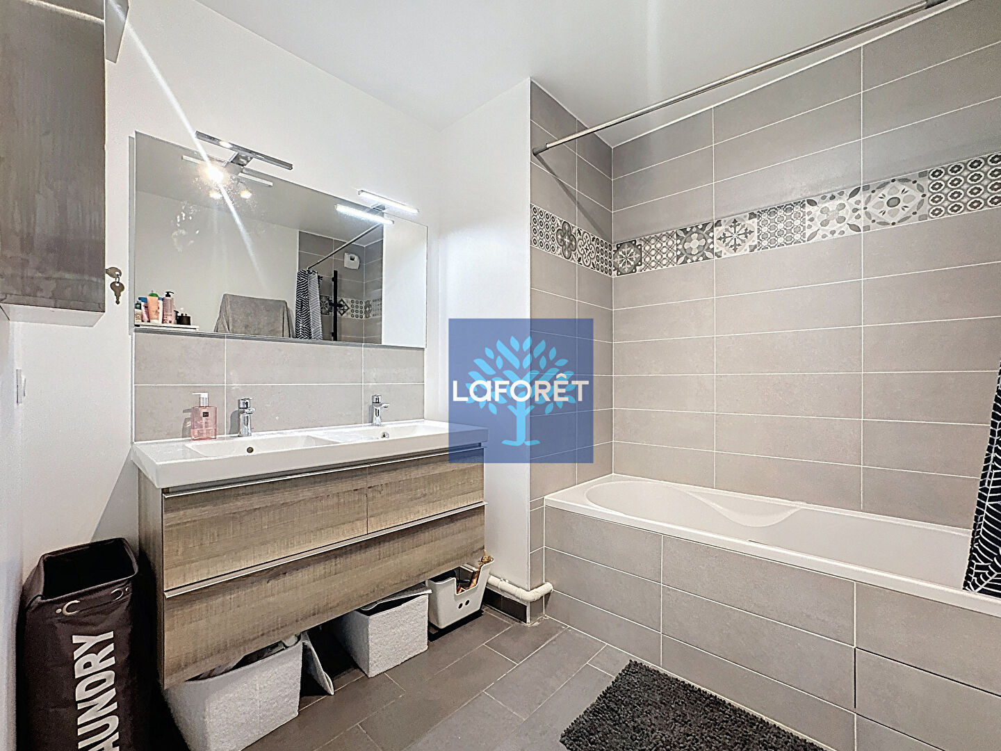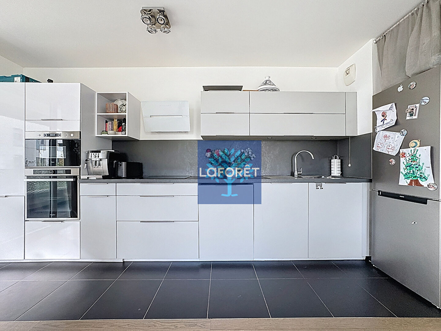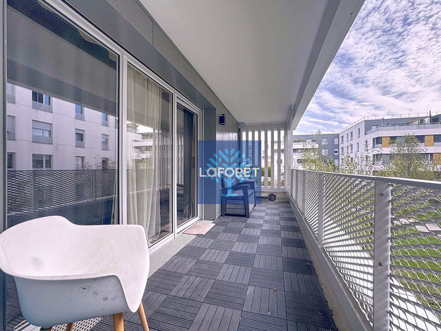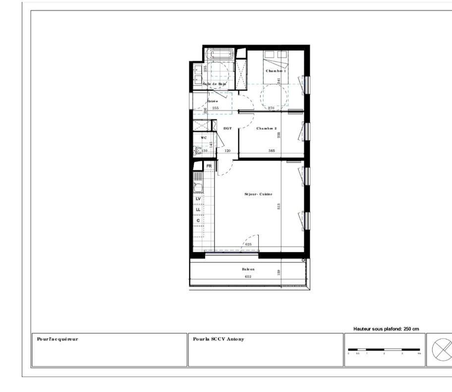 Cet appartement se compose d'une grand pièce à vivre avec cuisine ouverte donnant sur un grand balcon, de deux chambres, d'une salle de bain et d'un WC séparé.
