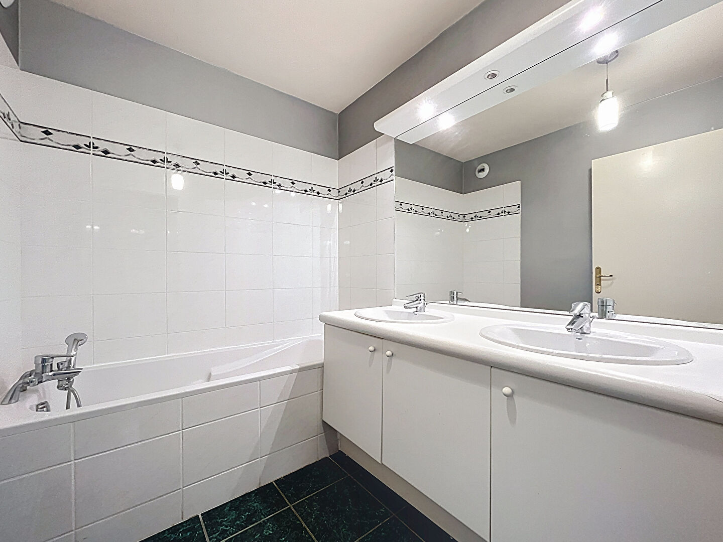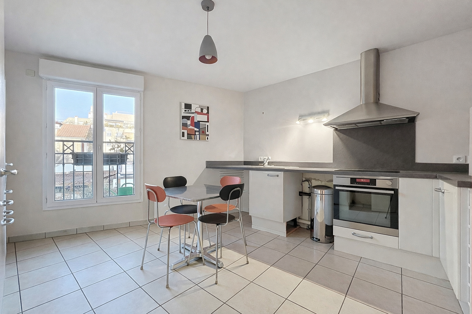 Deux chambres avec rangements, avec possibilité d'aménager une troisième. Deux salles de bains. Cuisine indépendante dinatoire.