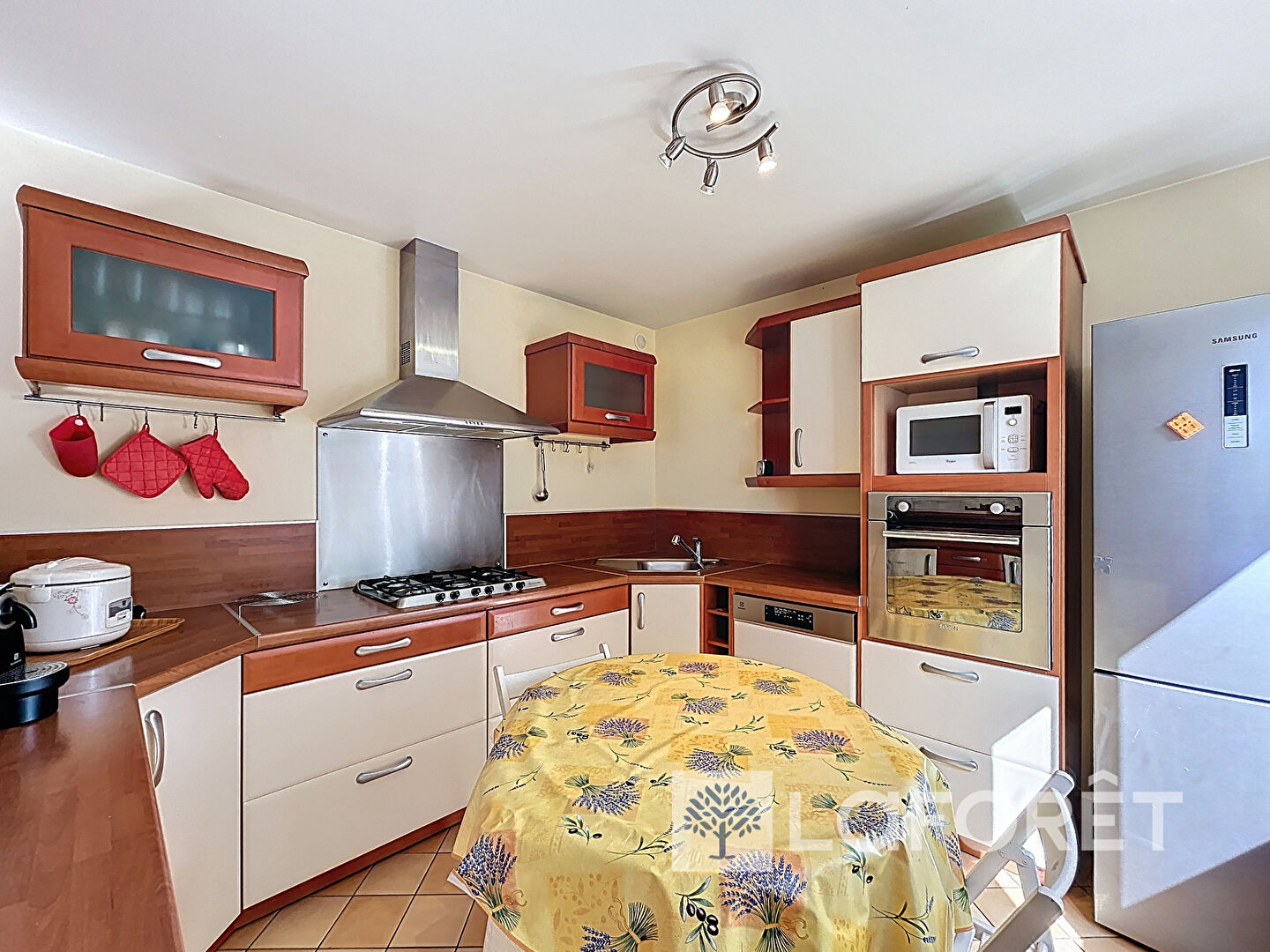 Elle se compose d'une entrée avec placard, belle cuisine équipée aménagée ouverte sur un grand séjour lumineux, une chambre, à l'étage trois belles chambres, très grande salle de bains avec baignoire et douche, au 2ème étage suite parentale climatisée.
