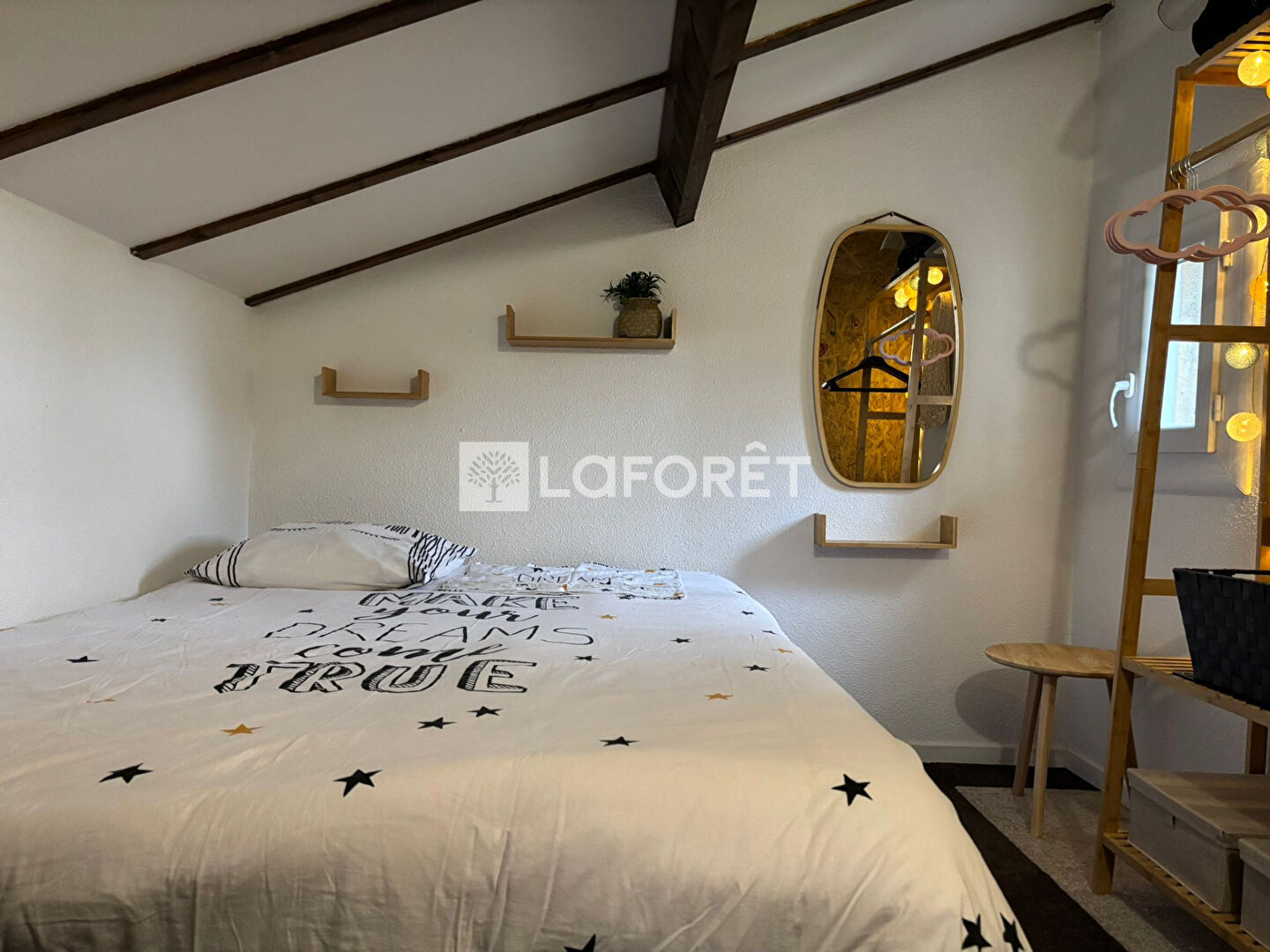 L'appartement se compose d'une pièce de vie avec cuisine aménagée et équipée, d'une chambre séparée, d'une mezzanine offrant un couchage supplémentaire ou un espace détente, d'une salle d'eau fonctionnelle ainsi que d'un WC indépendant. La climatisation réversible et le double vitrage garantissent un excellent confort en été comme en hiver.