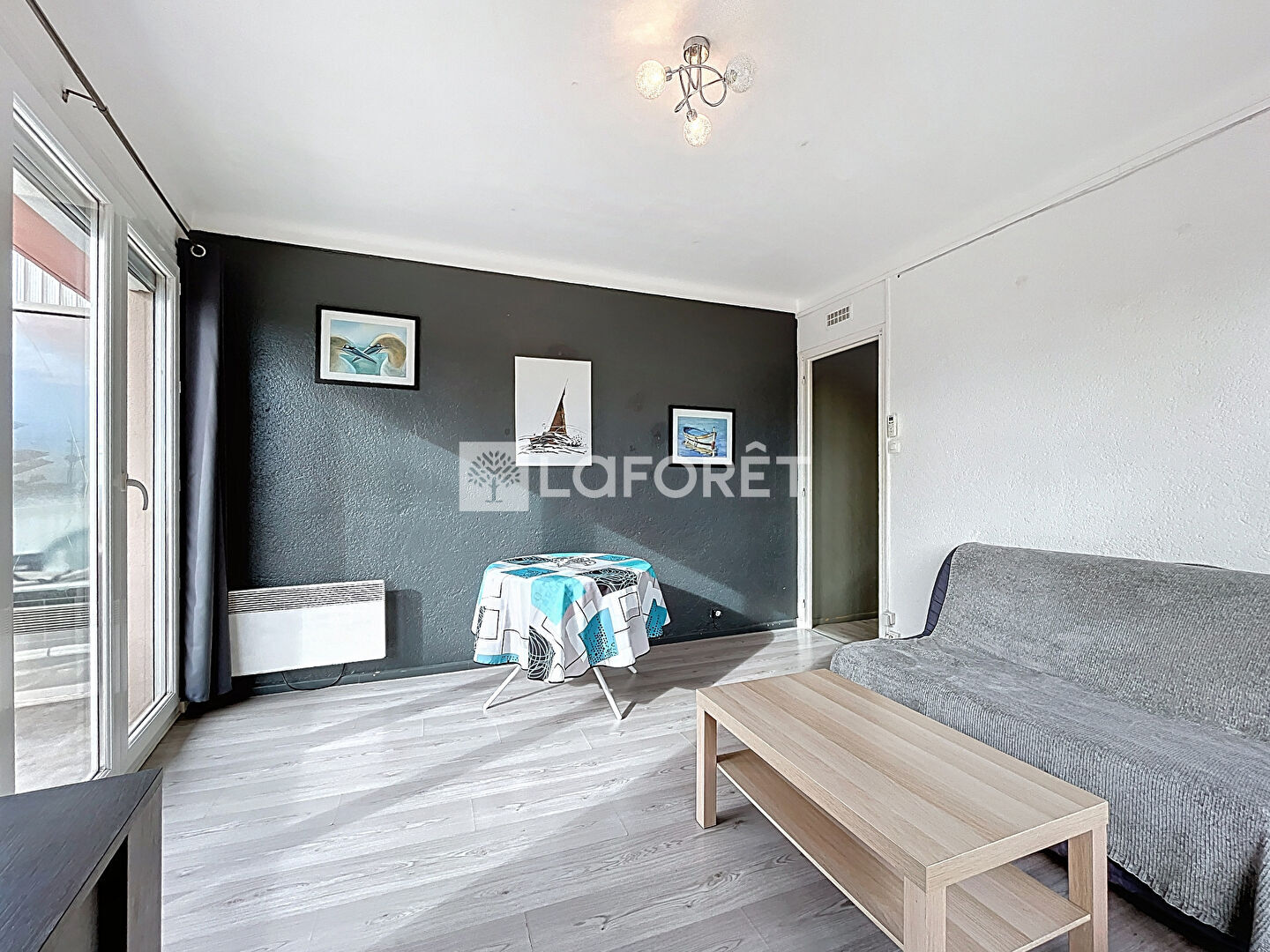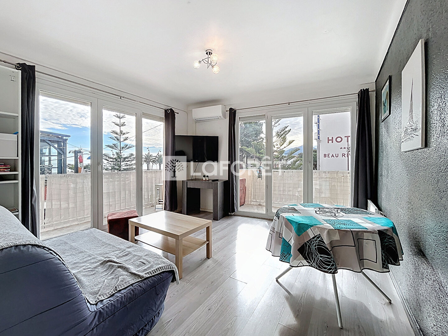 L'appartement se compose d'un séjour climatisé, agréable et lumineux, ouvrant directement sur une terrasse offrant une vue mer, parfaite pour profiter du climat méditerranéen.