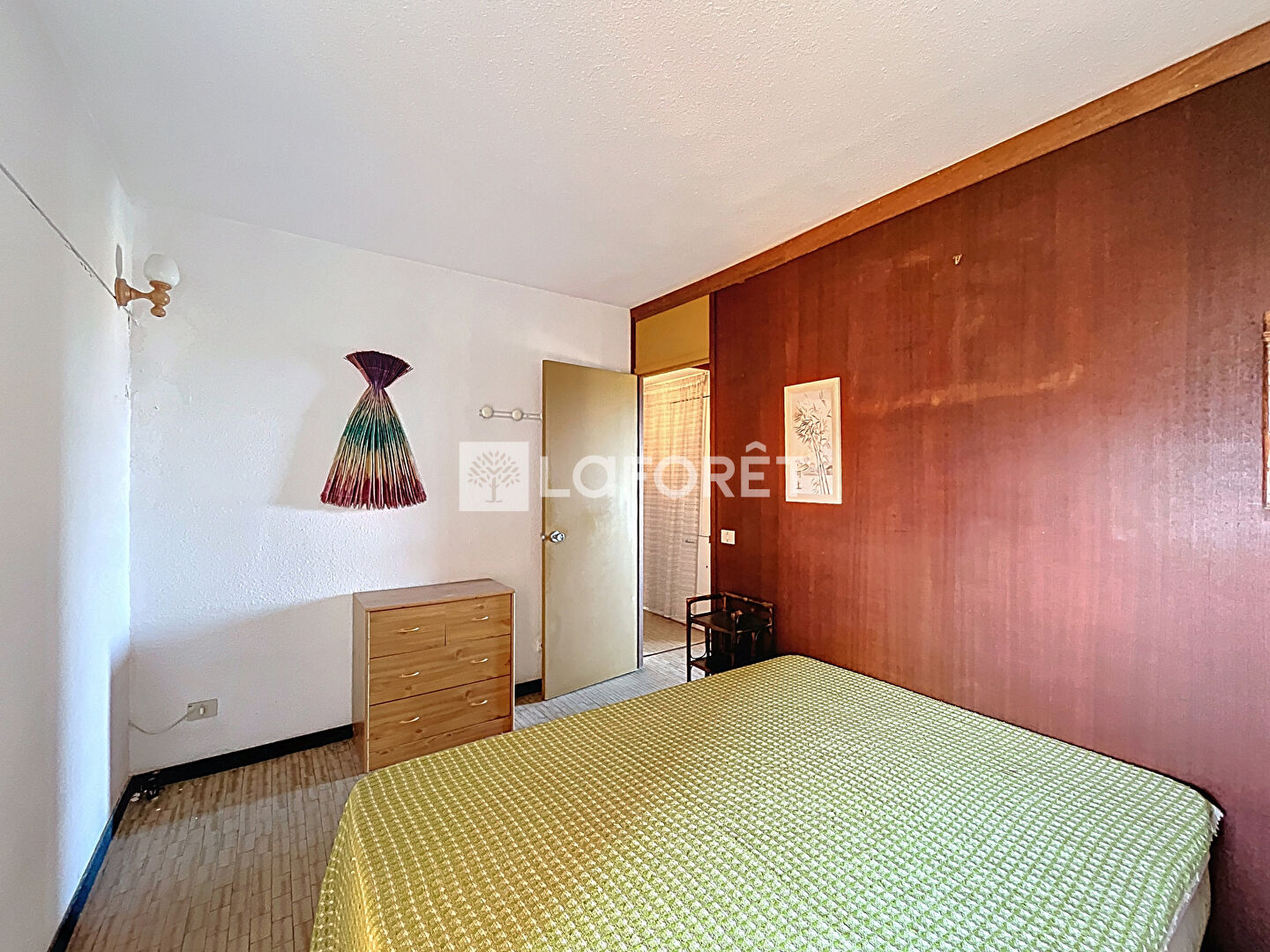 L'espace nuit se compose de deux chambres, chacune disposant de sa terrasse privative. Une salle d'eau ainsi qu'un WC indépendant complètent l'ensemble. L'appartement nécessite un rafraîchissement, laissant ainsi l'opportunité de le remettre au goût du jour et de l'aménager à votre image.