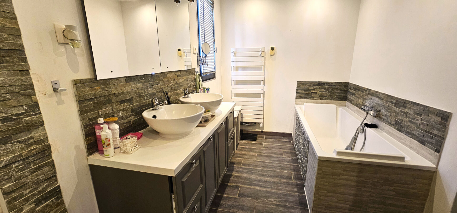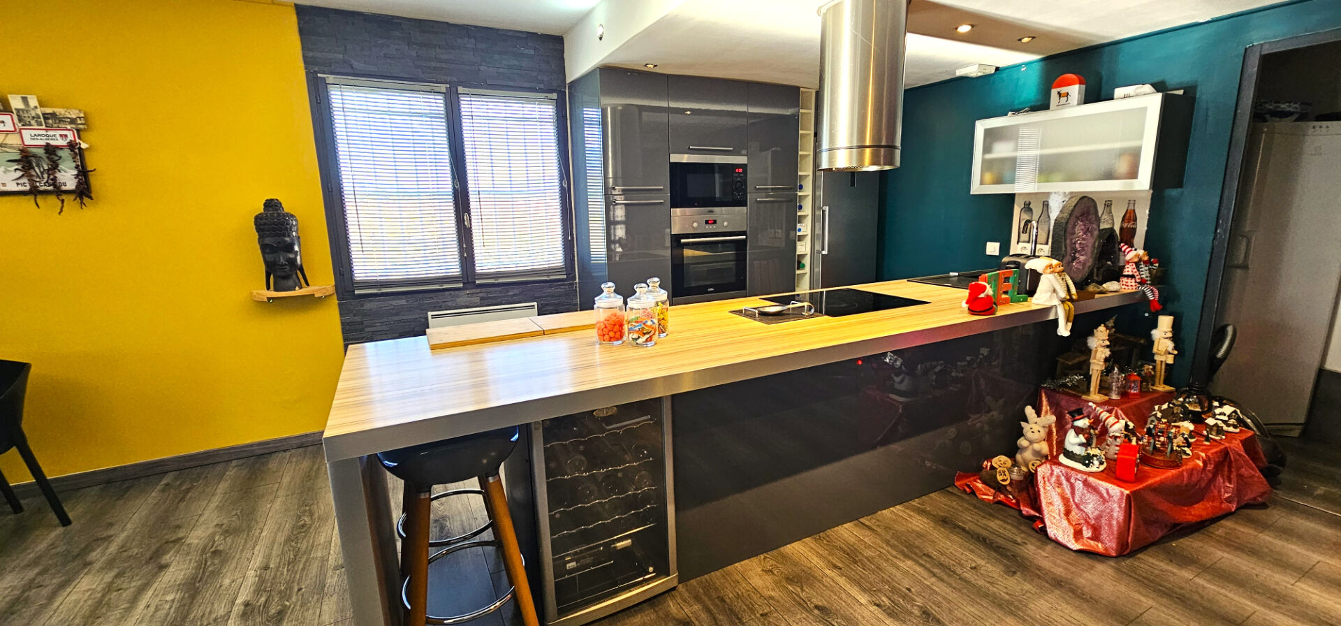 Belle pièce de vie d'environ 51 m² avec insert et cuisine ouverte aménagée et équipée,