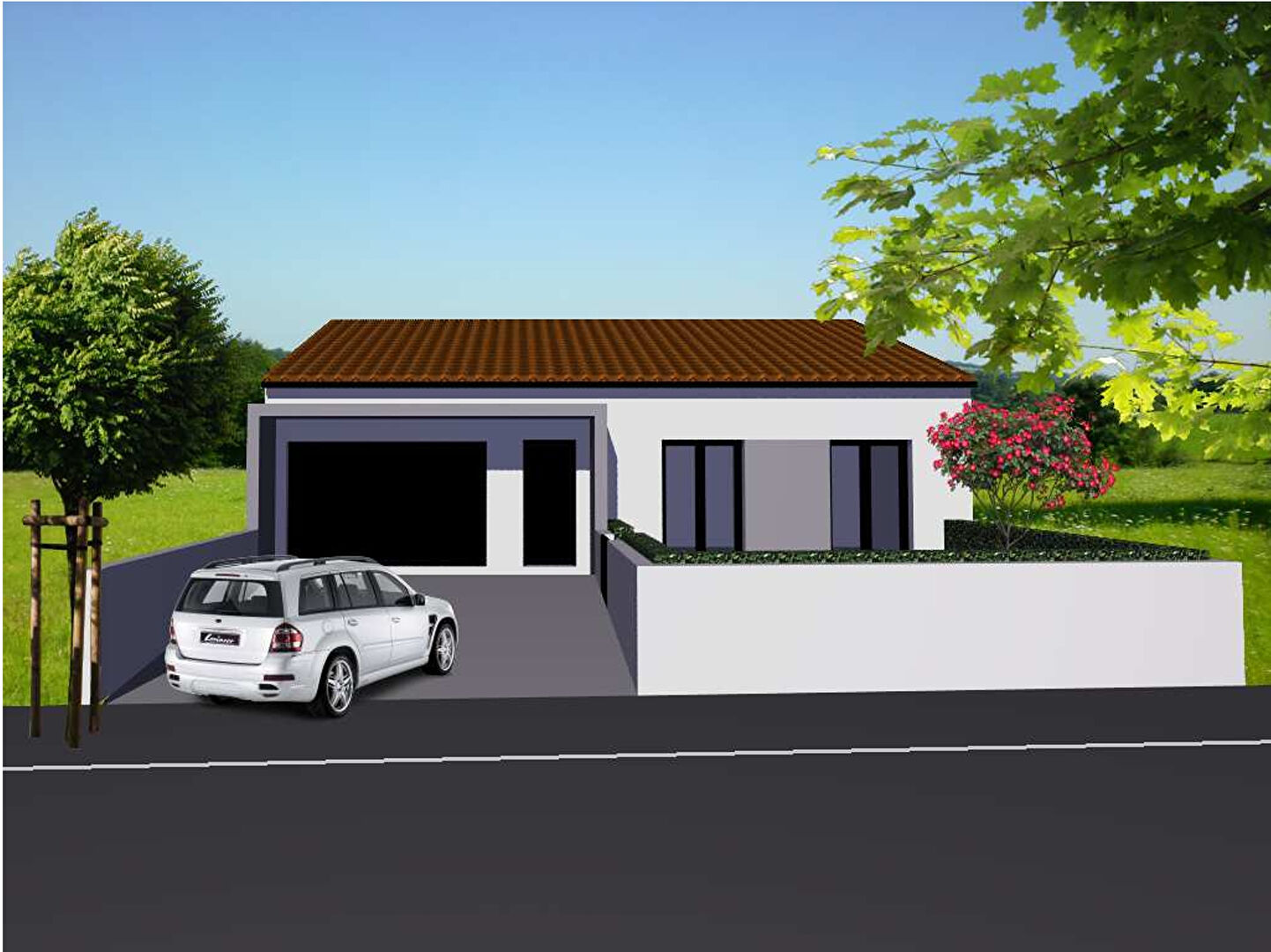 La première image présente une simulation de maison réalisable par le constructeur partenaire, afin de vous aider à visualiser le potentiel du terrain. Seule la parcelle est proposée à la vente.