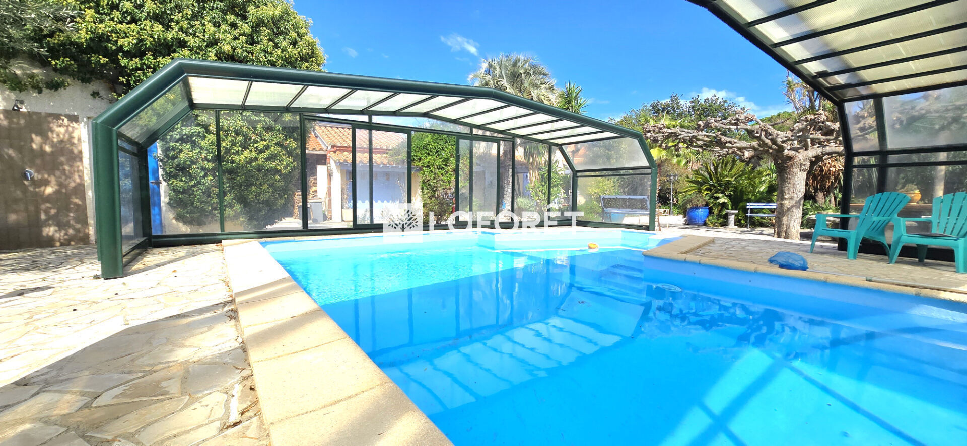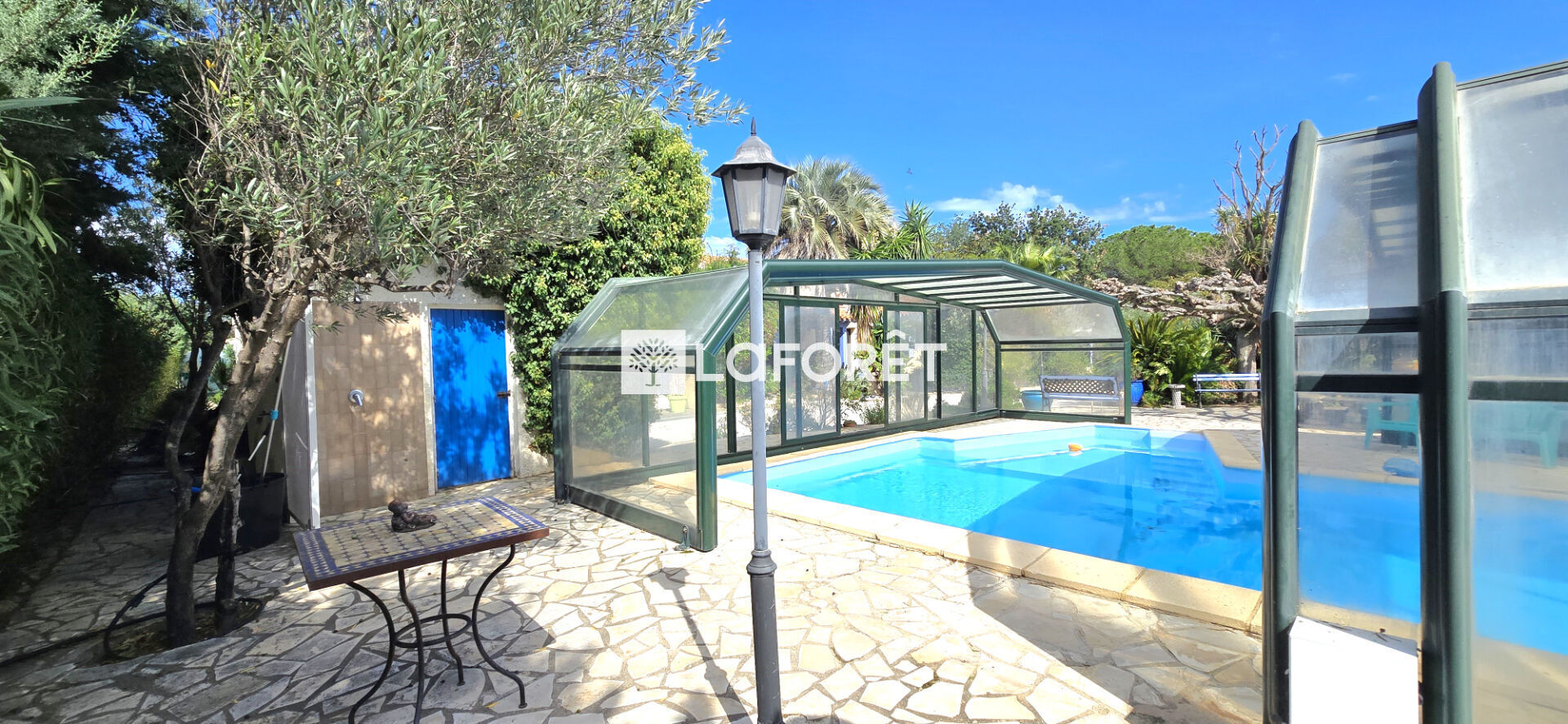 Implantée sur un magnifique parc arboré de plus de 3 200 m², sans vis-à-vis, elle séduit par son environnement verdoyant composé d'agrumes et d'oliviers centenaires. Une piscine sous abri vient parfaire cet ensemble et permet d'en profiter toute l'année.