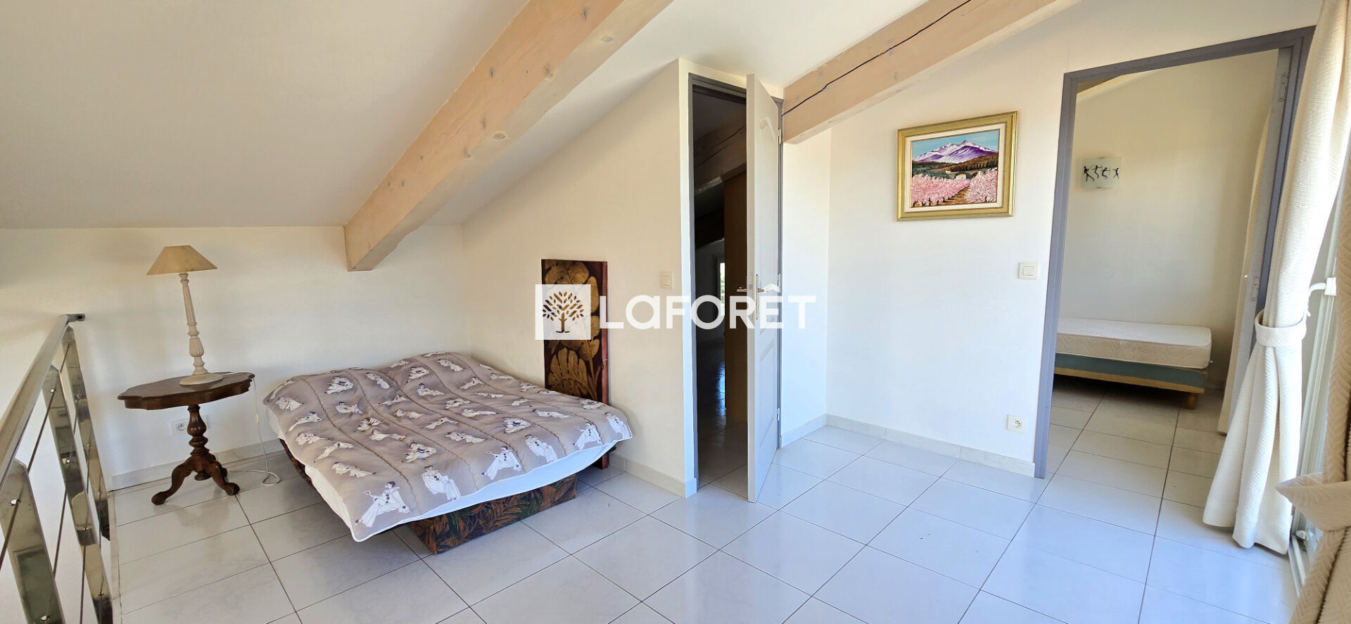 Parfaitement adaptée pour recevoir ou envisager un projet locatif : séjour avec cuisine, chambre et salle d'eau en rez-de-chaussée. À l'étage, mezzanine avec accès solarium et vue dégagée sur les Albères, ainsi qu'une chambre et un bureau.