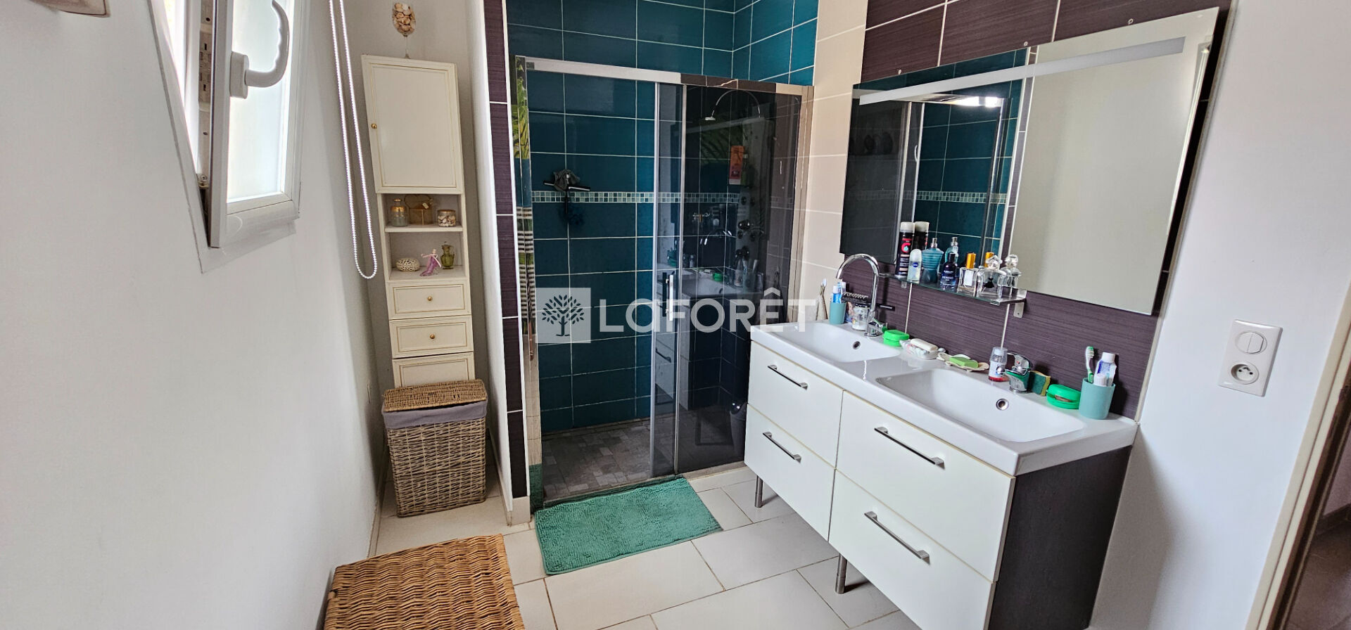 Une salle d'eau moderne, un WC séparé et une buanderie fonctionnelle complètent l'espace.