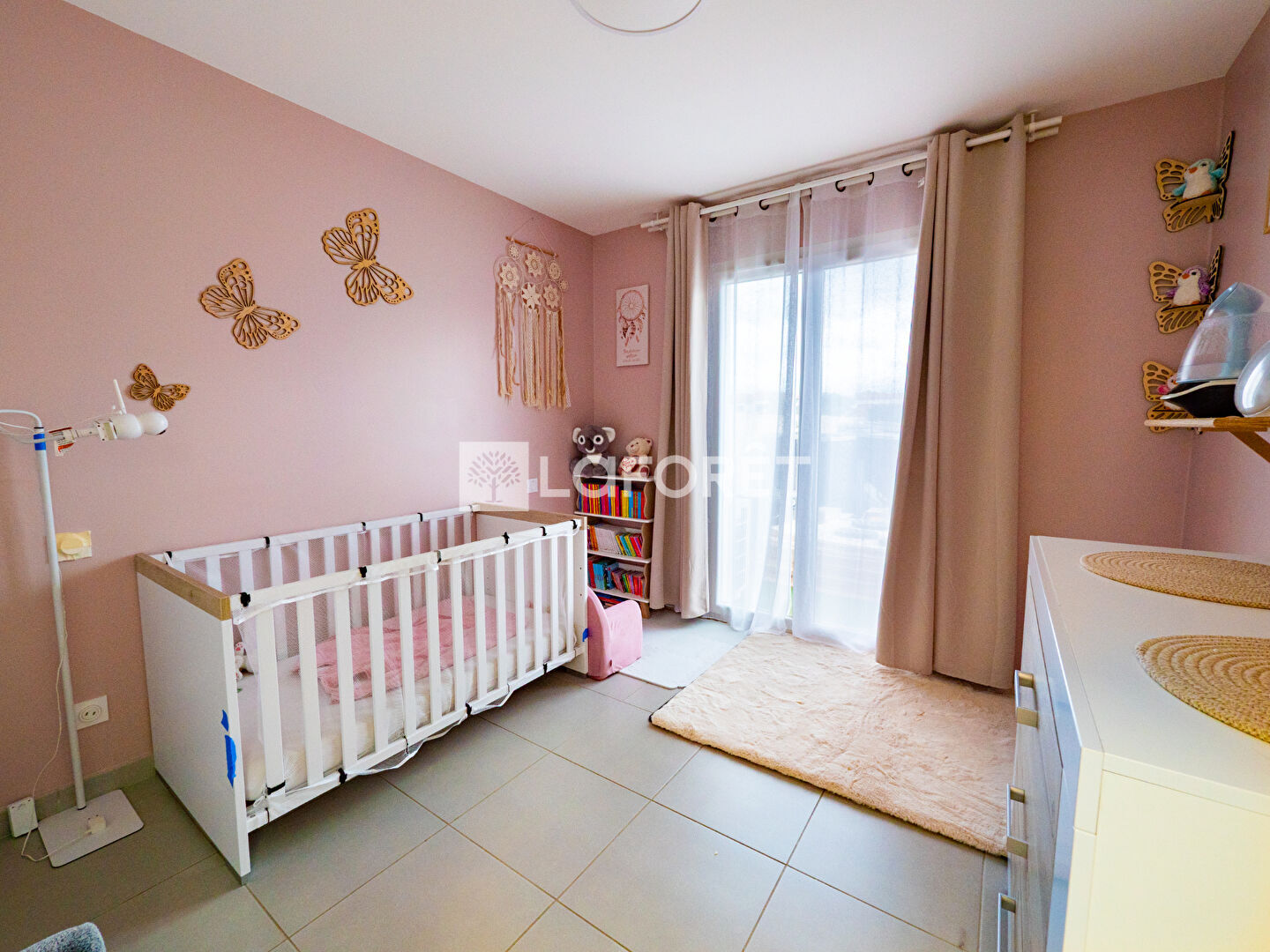 D'une superficie d'environ 75 m², elle se compose d'une pièce de vie lumineuse avec cuisine ouverte, de deux chambres dont une équipée d'un dressing, ainsi qu'une salle d'eau moderne.