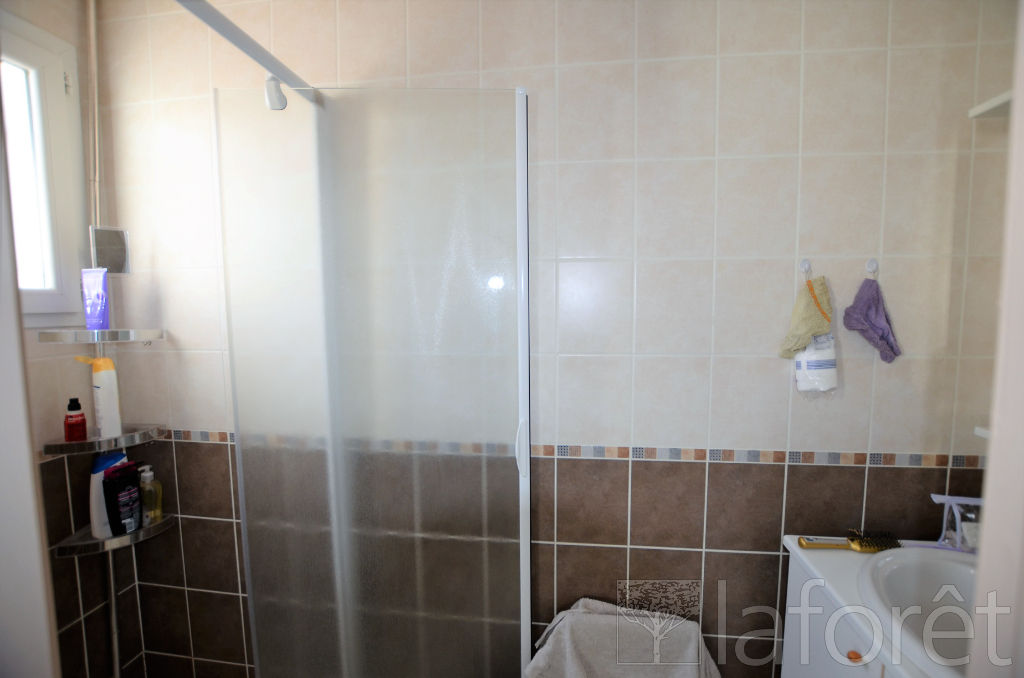 La maison se compose au rez-de-chaussée d'une entrée, d'un spacieux séjour lumineux d'environ 42 m² avec cuisine ouverte aménagée et équipée, d'une chambre avec salle d'eau privative, ainsi qu'un WC indépendant.