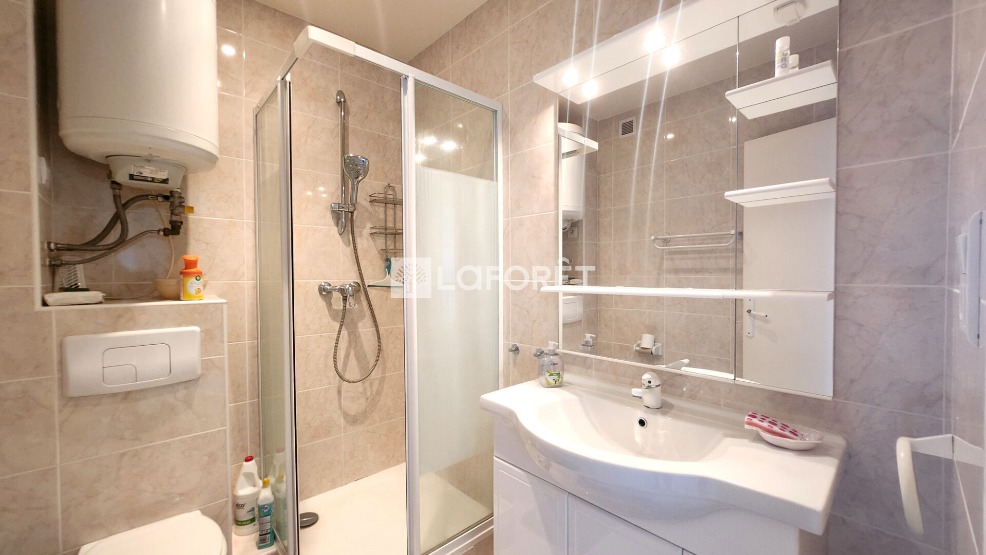 Climatisation réversible, volets roulants électriques et nombreux rangements complètent le confort.