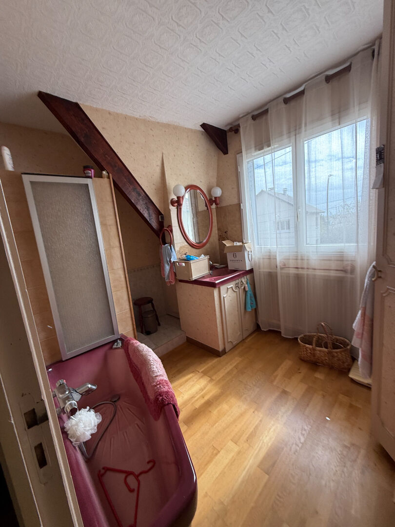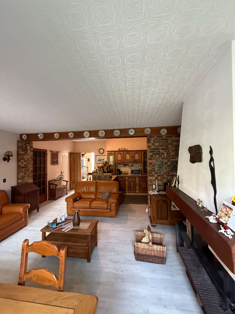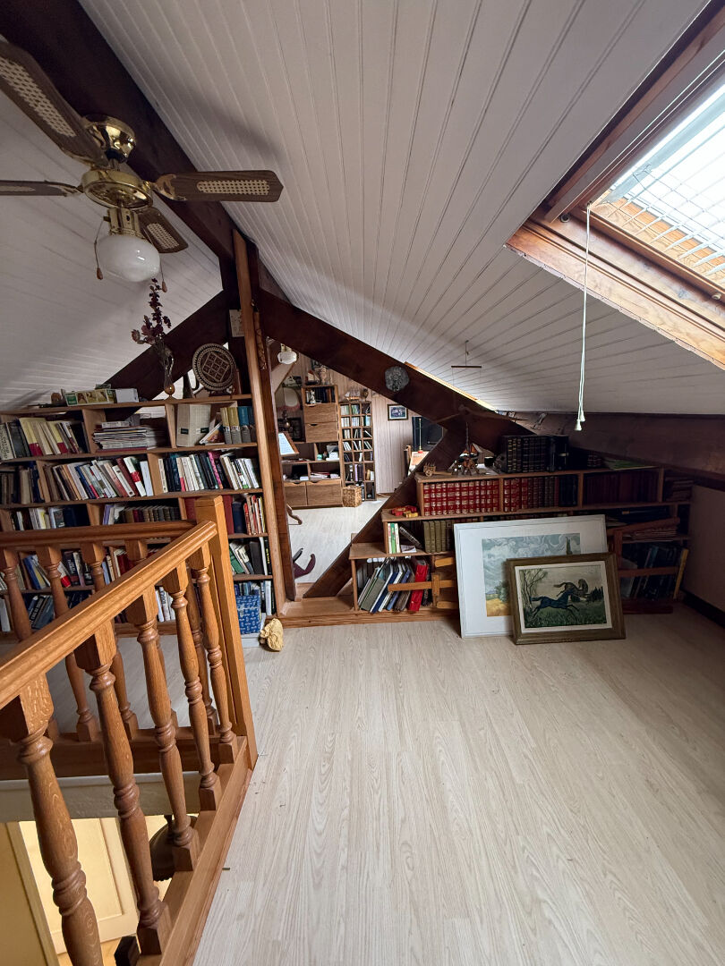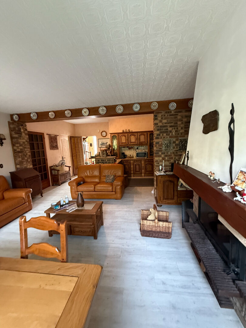 Entrée, séjour double, cuisine équipée, 4 chambres, combles aménagés, salle de bains, wc, sous sol total.
