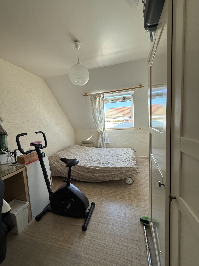 AU RDC: une entrée, salon, salle à manger, cuisine équipée, salle de bains, 2 chambres, wc.