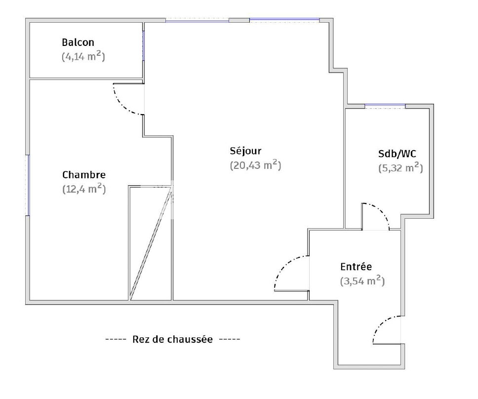 Il comprend une entrée, un séjour lumineux avec cuisine ouverte, une grande chambre, une salle de bains avec WC, ainsi qu'un balcon offrant un espace extérieur agréable.