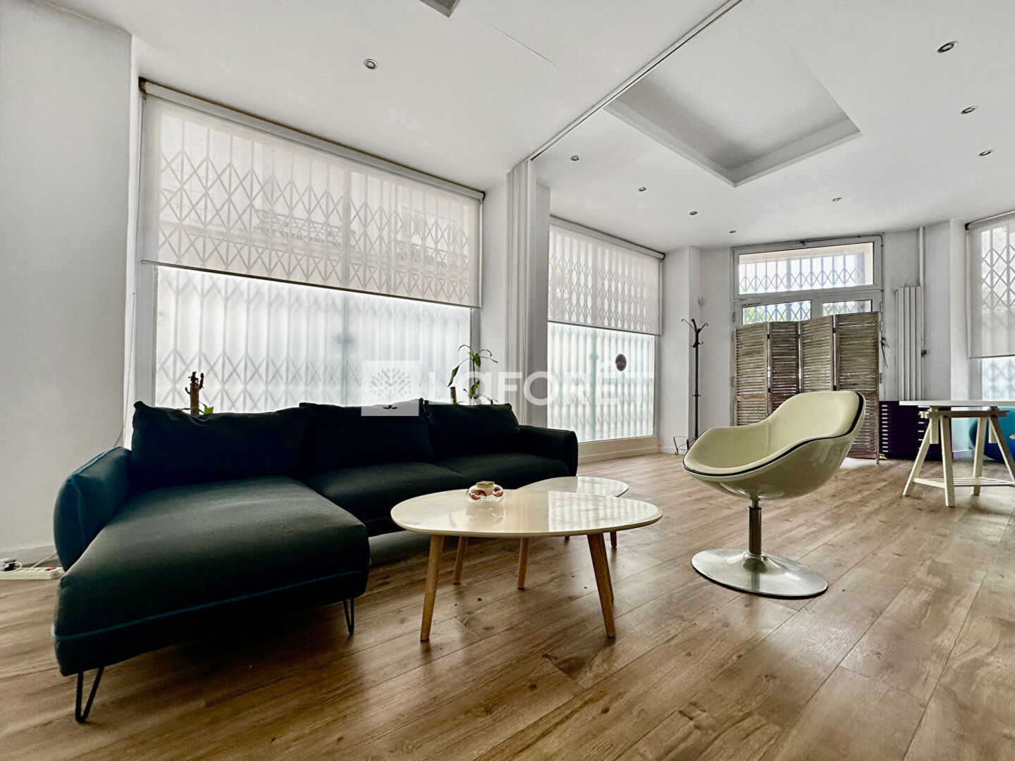 Situé en RDC d'un immeuble en copropriété, le local étant à usage mixte, il est également possible de le scinder via une cloison avec une partie commerciale et une partie habitation de type T2.