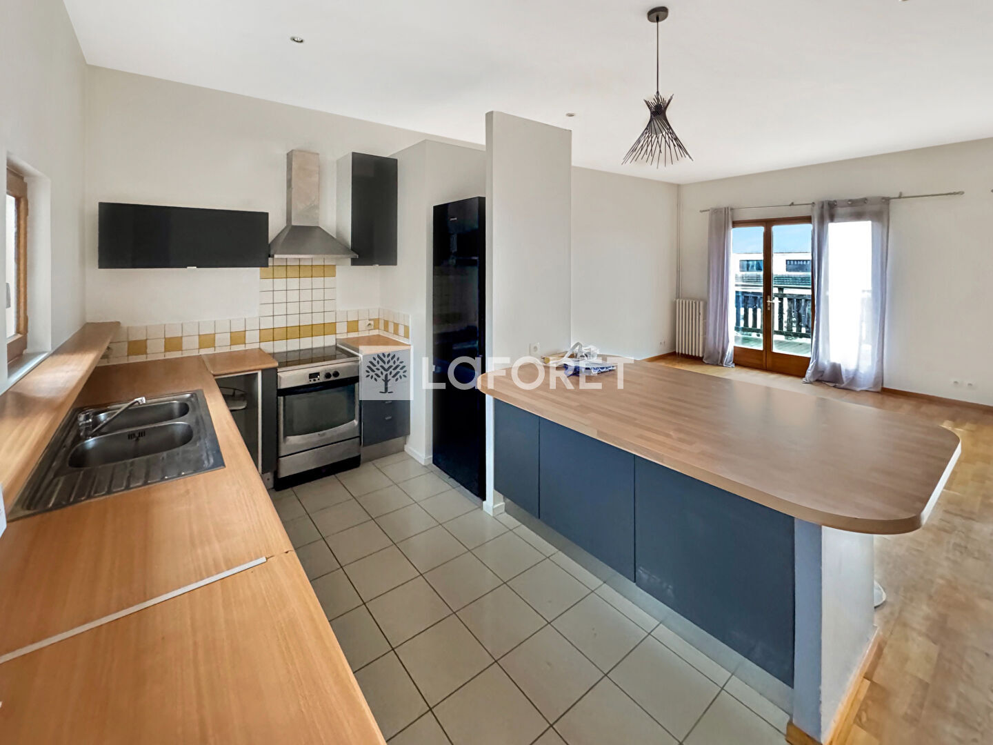 - En rez-de-chaussée sur élevé: un double séjour exposé plein sud (donnant sur une terrasse), un coin cuisine semi ouvert, une chambre.