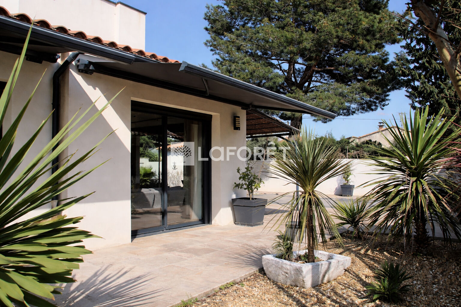Exclusivité à Arles : Nous vous proposons à la vente, cette superbe villa moderne, entièrement rénovée à neuf, récemment , avec une piscine, sur une parcelle arborée, deux terrasses ombragées, un garage,