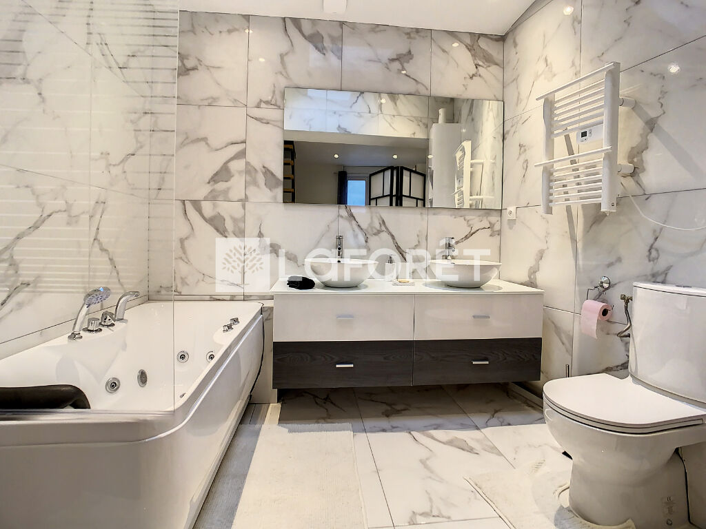 Aux étages, vous trouverez 2 chambres dont une suite parentale avec salle de bains et baignoire balnéo.