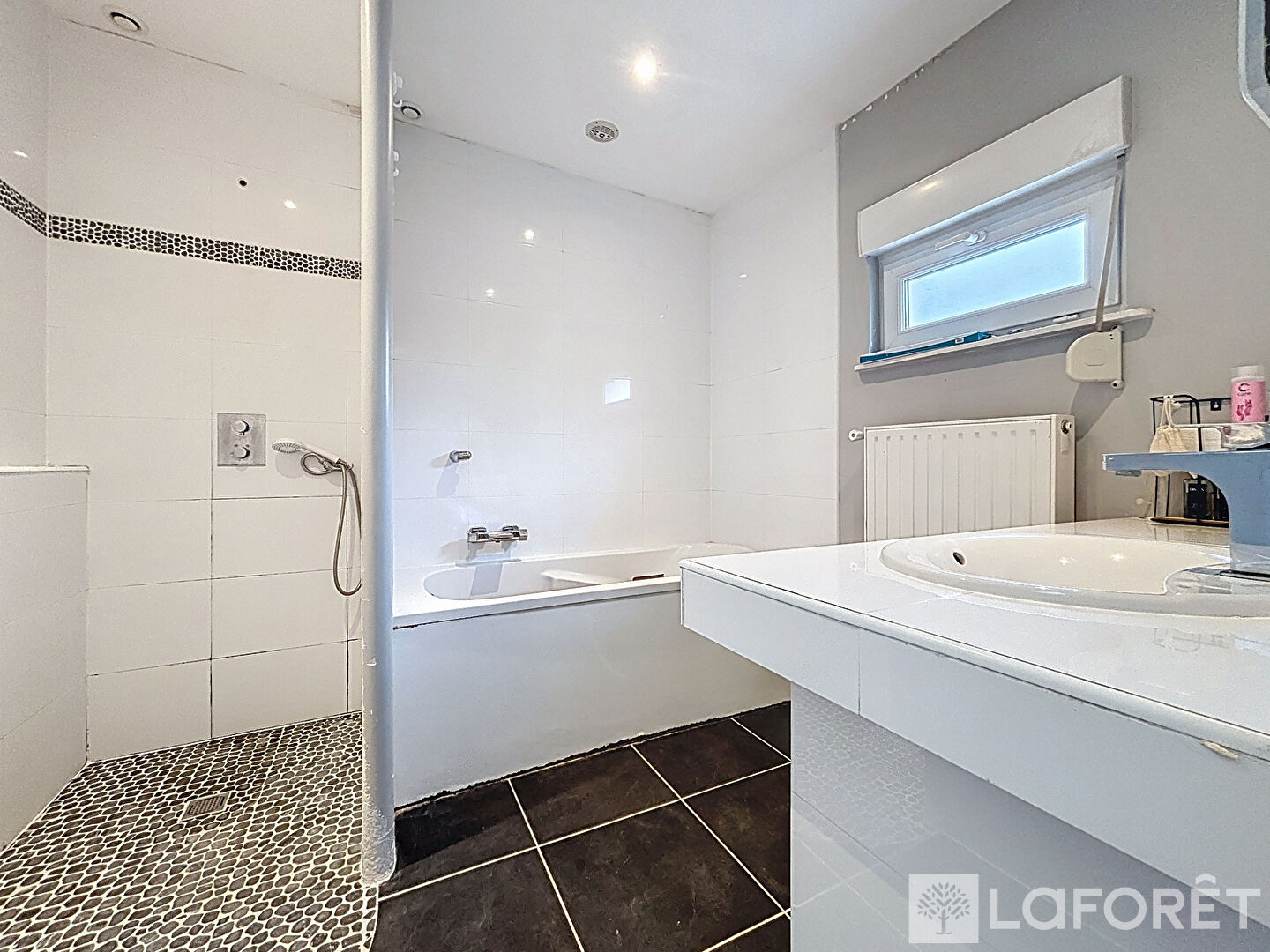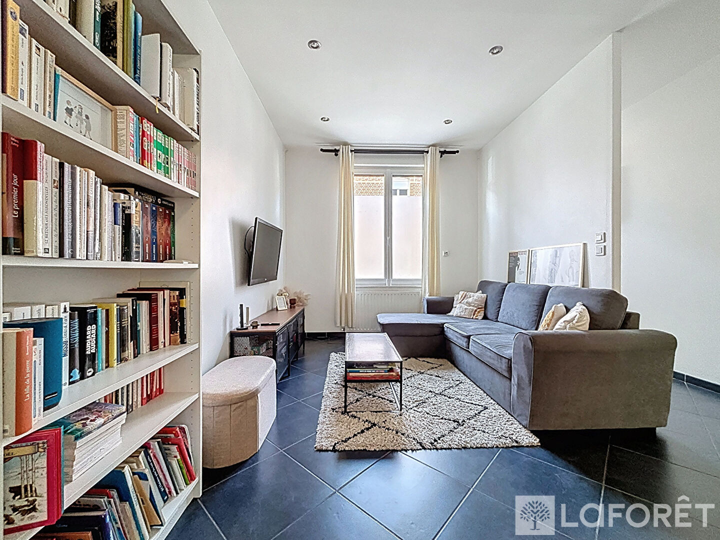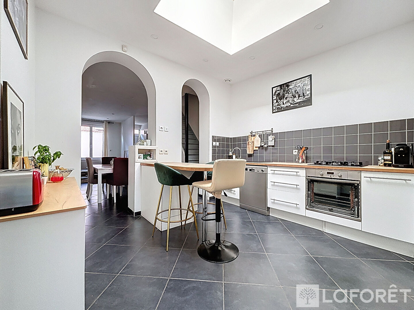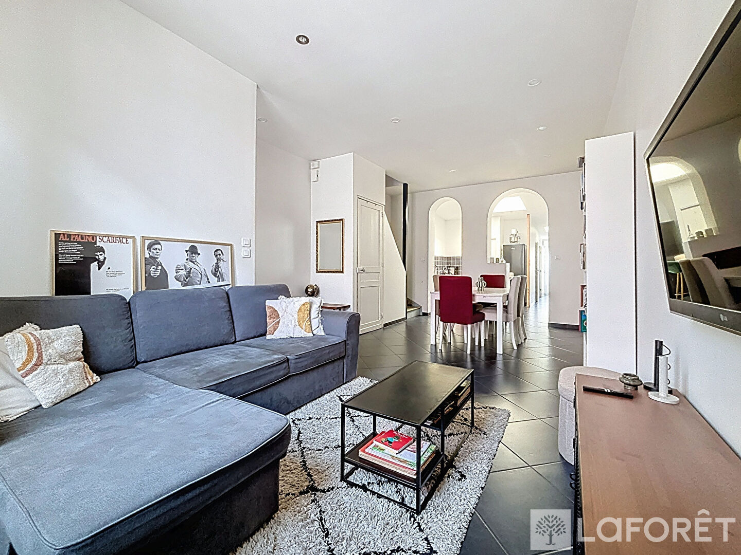Maison des années 30 offrant au rez-de-chaussée un sas d'entrée, une pièce de vie de 21m², une cuisine équipée, un espace buanderie, une salle de bains et un WC.