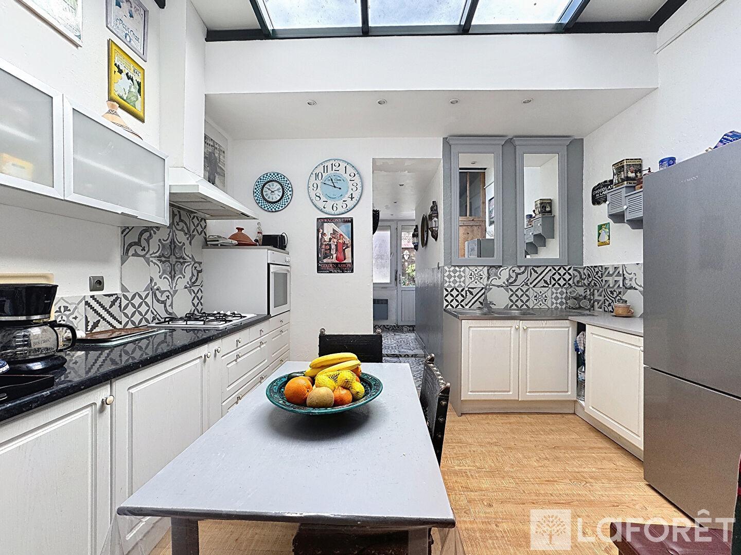 Au rez-de-chaussée la maison offre une belle pièce de vie, une cuisine aménagée et équipée lumineuse avec une verrière, et une salle de bains.