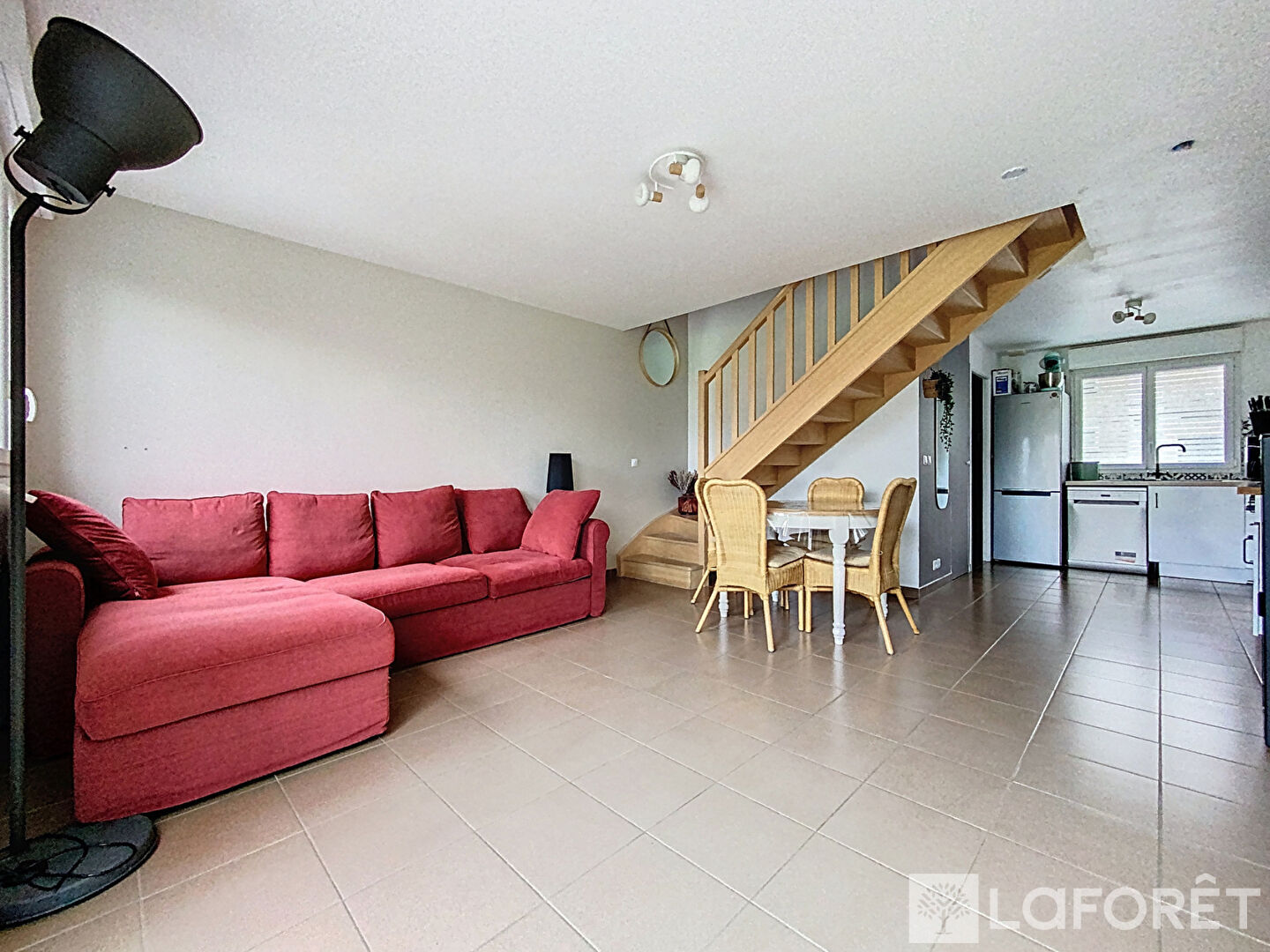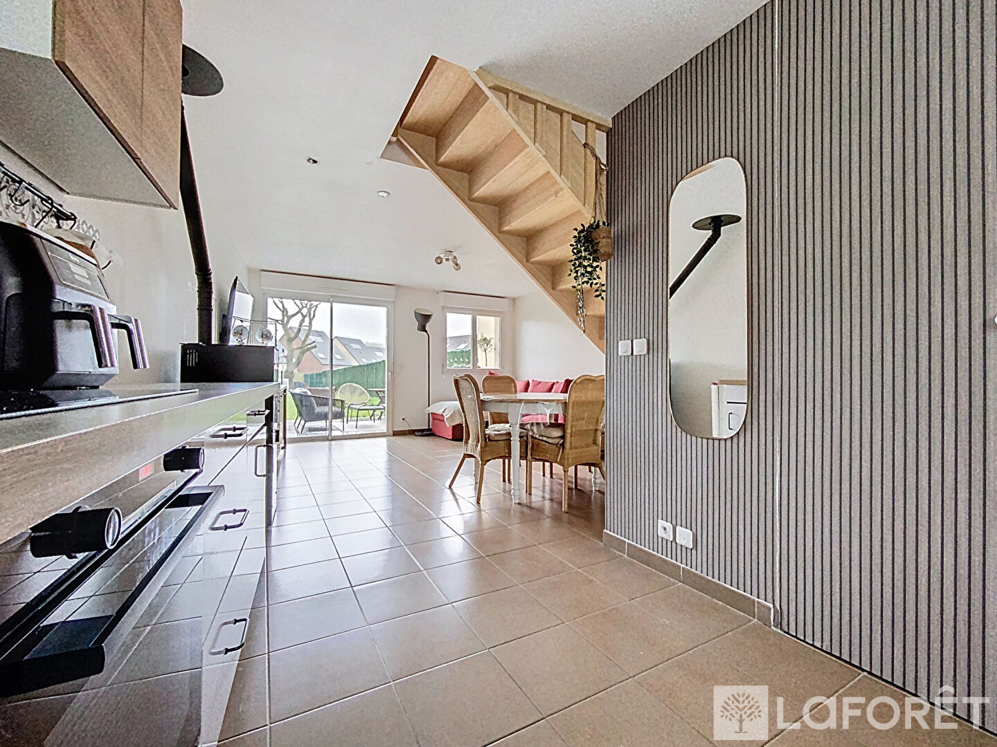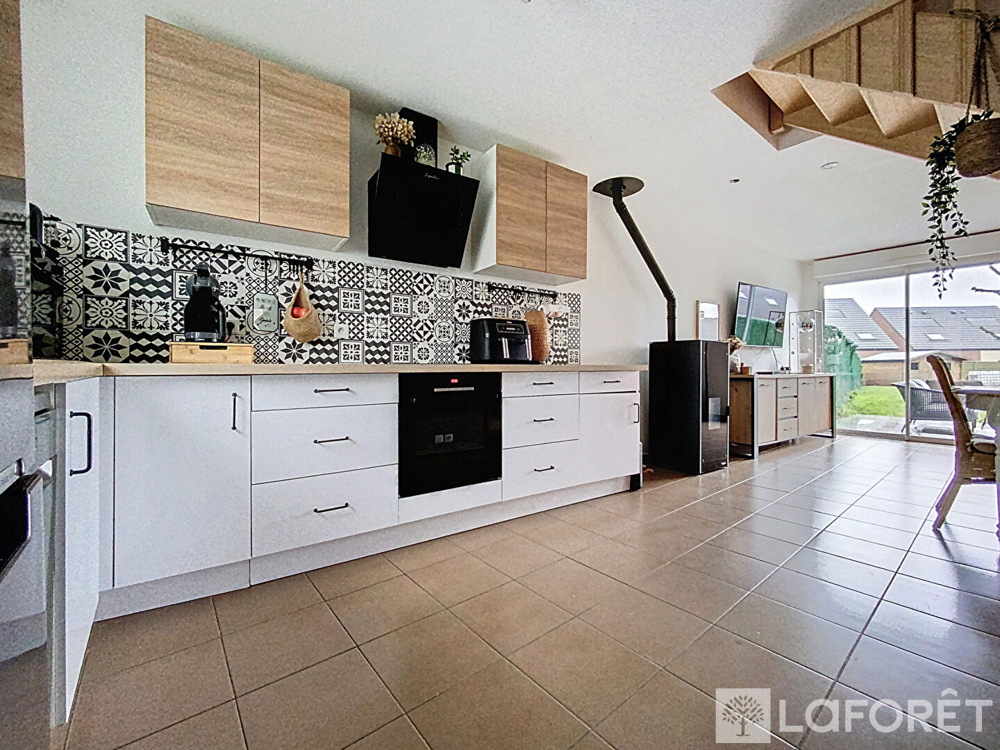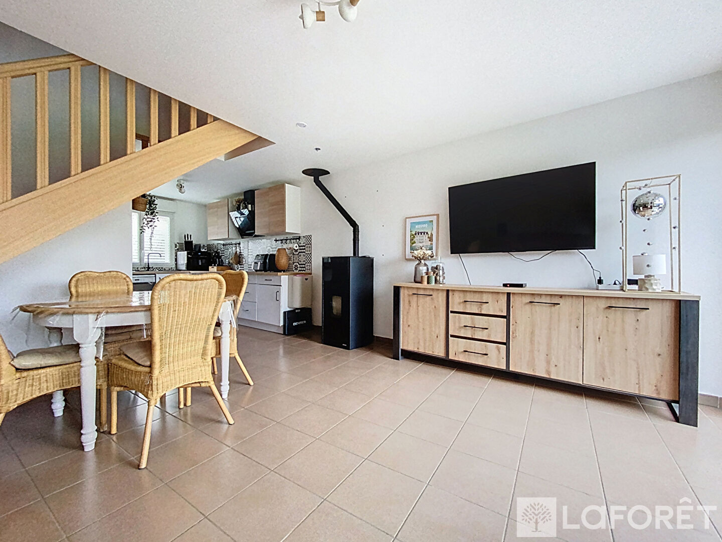 Maison construite en 2015 de 3 pièces offrant environs 64m² habitables disposant au rez-de-chaussée d'une belle pièce de vie lumineuse avec cuisine aménagée et équipée et d'un poêle à granulés.