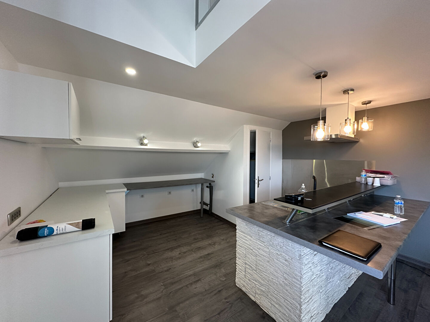 A l'étage, une mezzanine aménageable en chambre, dressing, espace de stockage, etc et une salle de bains et WC.