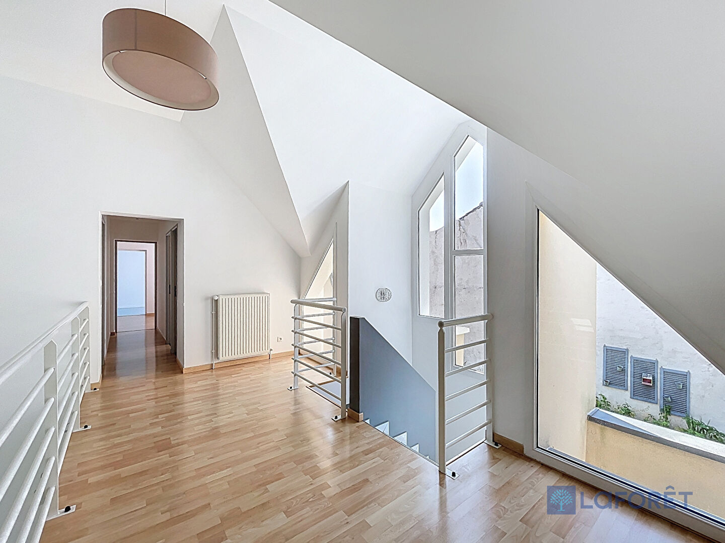 À l'étage, une élégante mezzanine distribue les espaces de nuit : une somptueuse suite parentale de plus de 20 m² avec salle de bains attenante et balcon privatif, trois chambres dotées de rangements intégrés, une salle d'eau indépendante et des toilettes séparées.